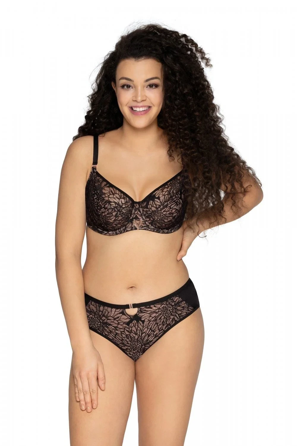 Dámská podprsenka 1955 Let´s get loud AVA - černá barva - krajkové košíčky s květinovým motivem - podšité bavlnou béžové barvy - vyztužená kosticemi - obvod z elastického tylu - nastavitelná a neodepínatelná ramínkaMateriálové složení: 88% polyamid + 8% bavlna + 4% elastan