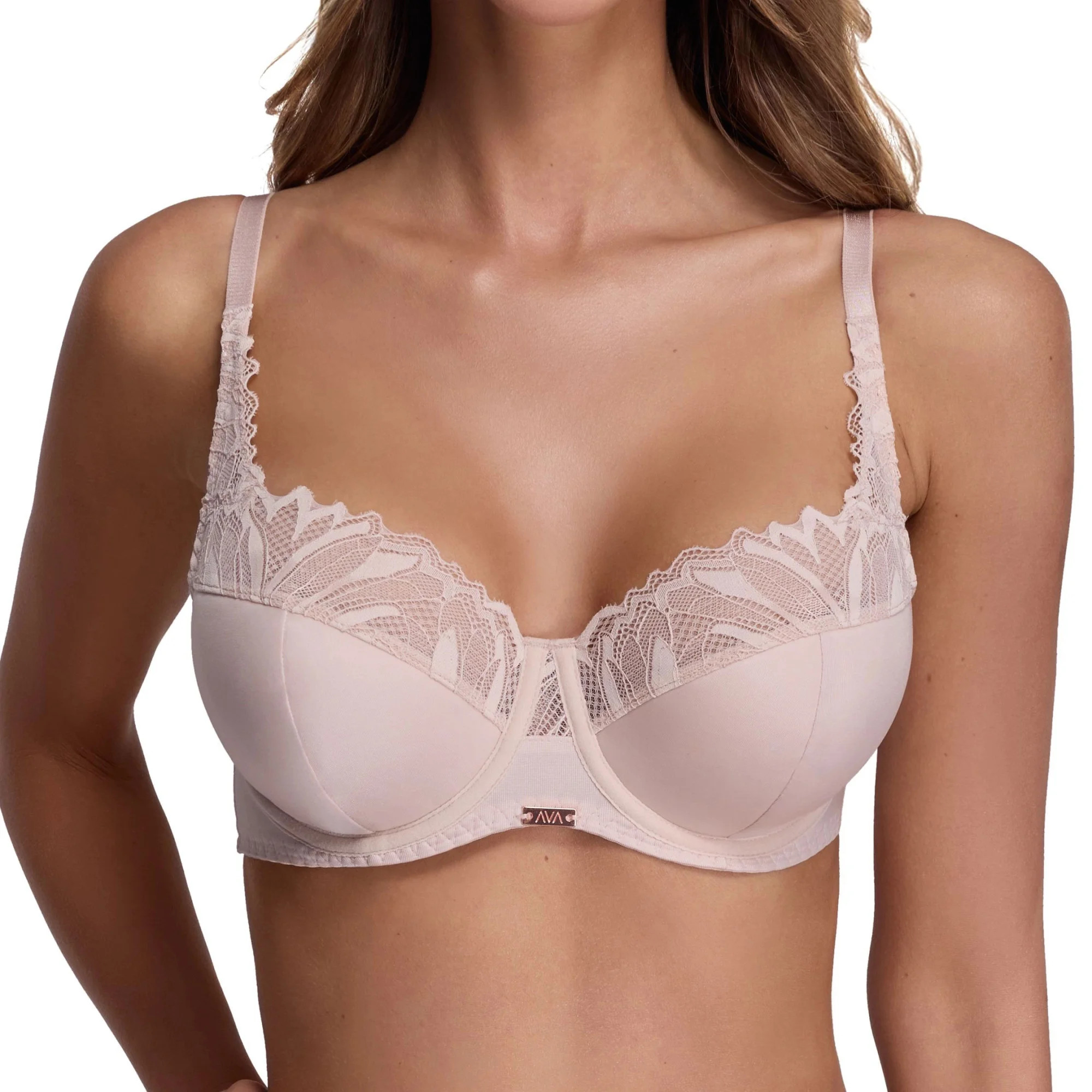 Dámská podprsenka 2105 Yasemin beige AVA - béžová barva - typ semi soft - z hladkého mikrovlákna - horní část košíčků zdobená krajkou - vyztužená kosticemi - ramínka posuvná a neodepínatelná - zapínání na dva nebo tři háčky s třístupňovým nastavením