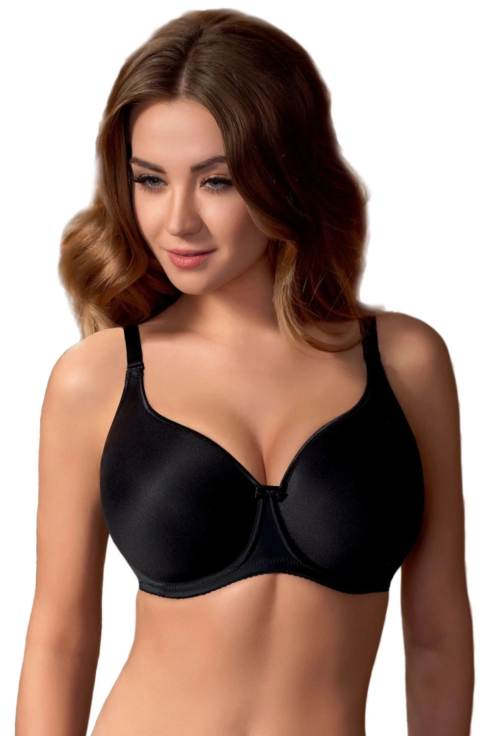 Dámská podprsenka 220 black VENA - černá barva - odnímatelná ramínka, dají se nastavit - vyztužené košíčky - hladký materiál, jednoduchý design - mezi košíčky decentní mašlička na ozdobu