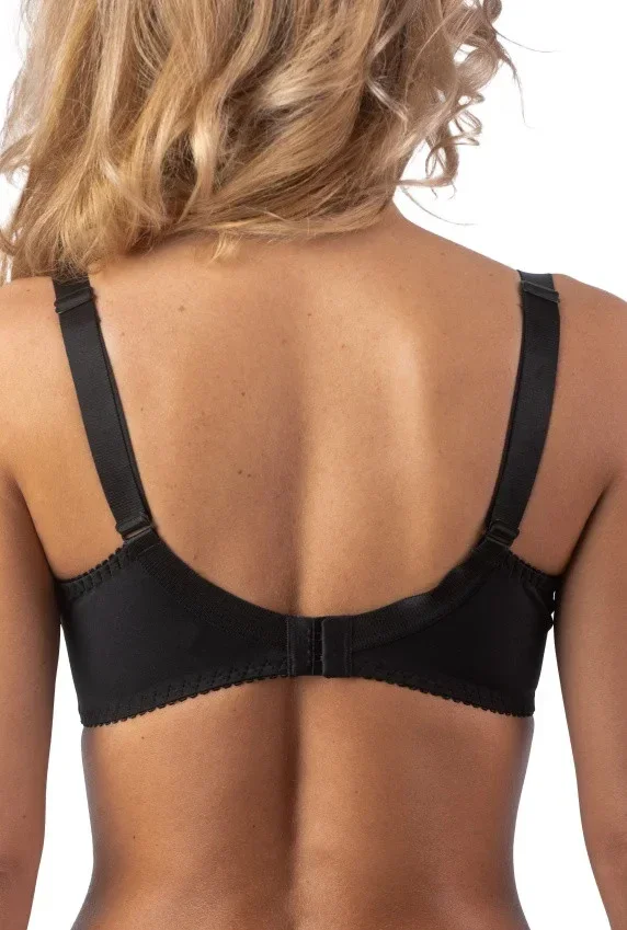 Dámská podprsenka značky Fantasy. Díky použitému 3D spacer materiálu (trychtýřkovitému zpracování materiálu) je tato podprsenka lehká, vzdušná a výborně odvádí pot od těla a přitom se budete cítit absolutně pohodlně a svěže. Pevně všitá ramínka jsou širší a lehce délkově nastavitelná. Kolem spodní části košíčků je našitá krajka a mezi košíčky je stříbrná aplikace se štrasovým kamínkem. Jemné košíčky zpevňuje uvnitř boční výztuž. Vyšší střed i obvod dokonale podrží i větší poprsí. Zadní zapínání je na dva háčky a tři pozice.