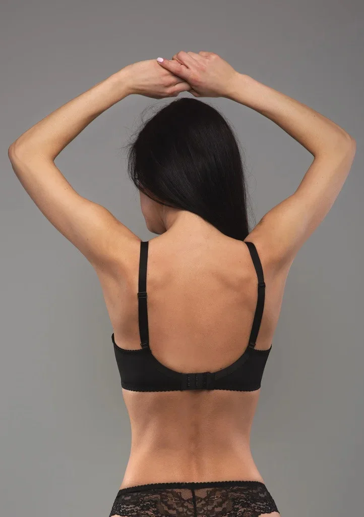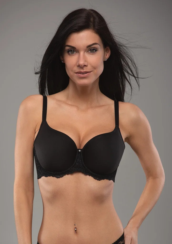 Dámská podprsenka značky Fantasy. Díky použitému 3D spacer materiálu (trychtýřkovitému zpracování materiálu) je tato podprsenka lehká, vzdušná a výborně odvádí pot od těla a přitom se budete cítit absolutně pohodlně a svěže. Pevně všitá ramínka jsou lehce délkově nastavitelná. Kolem spodní části košíčků je našitá krajka a mezi košíčky je stříbrná aplikace se štrasovým kamínkem. Jemné košíčky zpevňuje uvnitř boční výztuž. Vyšší střed i obvod dokonale podrží i větší poprsí. Zadní zapínání je na dva háčky a tři pozice.
