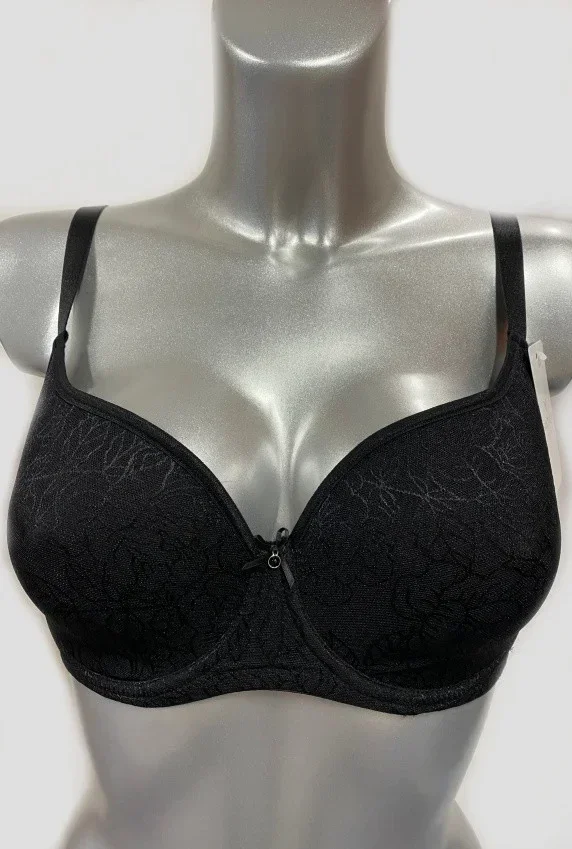 Dámská podprsenka 3D SPACER z nové kolekce Triumph od značky Fantasy je ušitá z jemné krajky. Podprsenka má jemně vyztužené košíčky a vyšší střed. Uvnitř košíčků na okraji je všitá jemná látka na podporu poprsí. Díky použitému 3D spacer materiálu (trychtýřkovitému zpracování materiálu) je tato podprsenka lehká, vzdušná a výborně odvádí pot od těla a přitom se budete cítit absolutně pohodlně a svěže. Obvod podprsenky je zpevněn silikonovou kosticí. Košíčky mají kostice a mezi nimi je stříbrná aplikace se štrasovým kamínkem s malou mašličkou. Vyšší střed i obvod dokonale podrží i větší poprsí. Pevně všitá ramínka jsou délkově nastavitelná. Zadní zapínání je na dva háčky a dvě pozice.