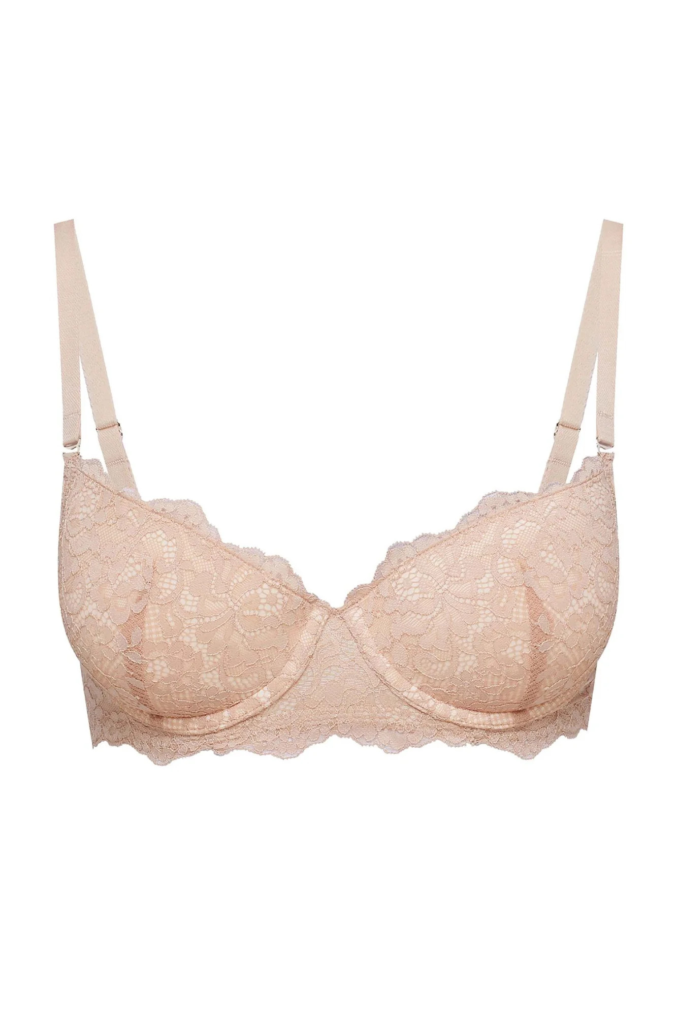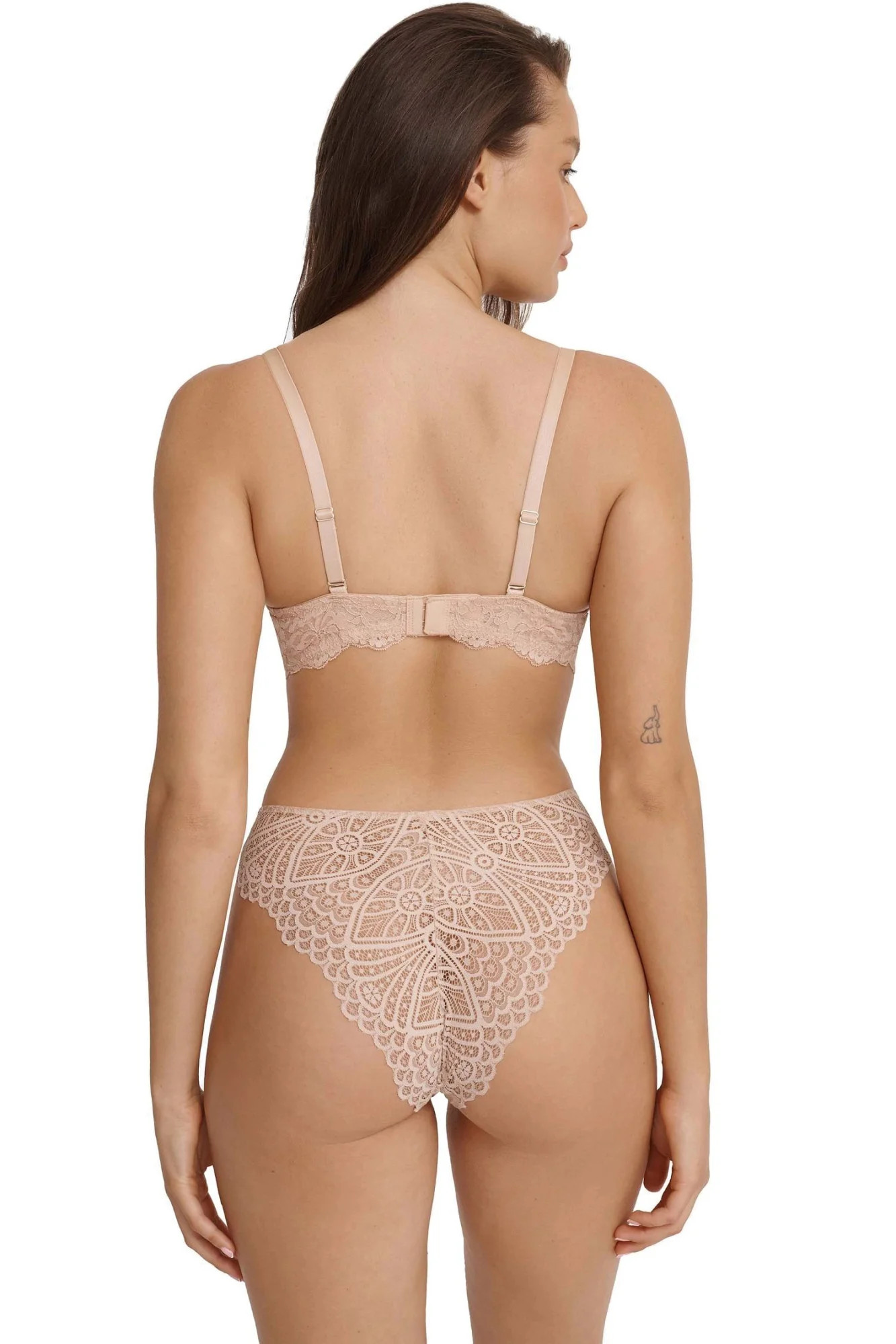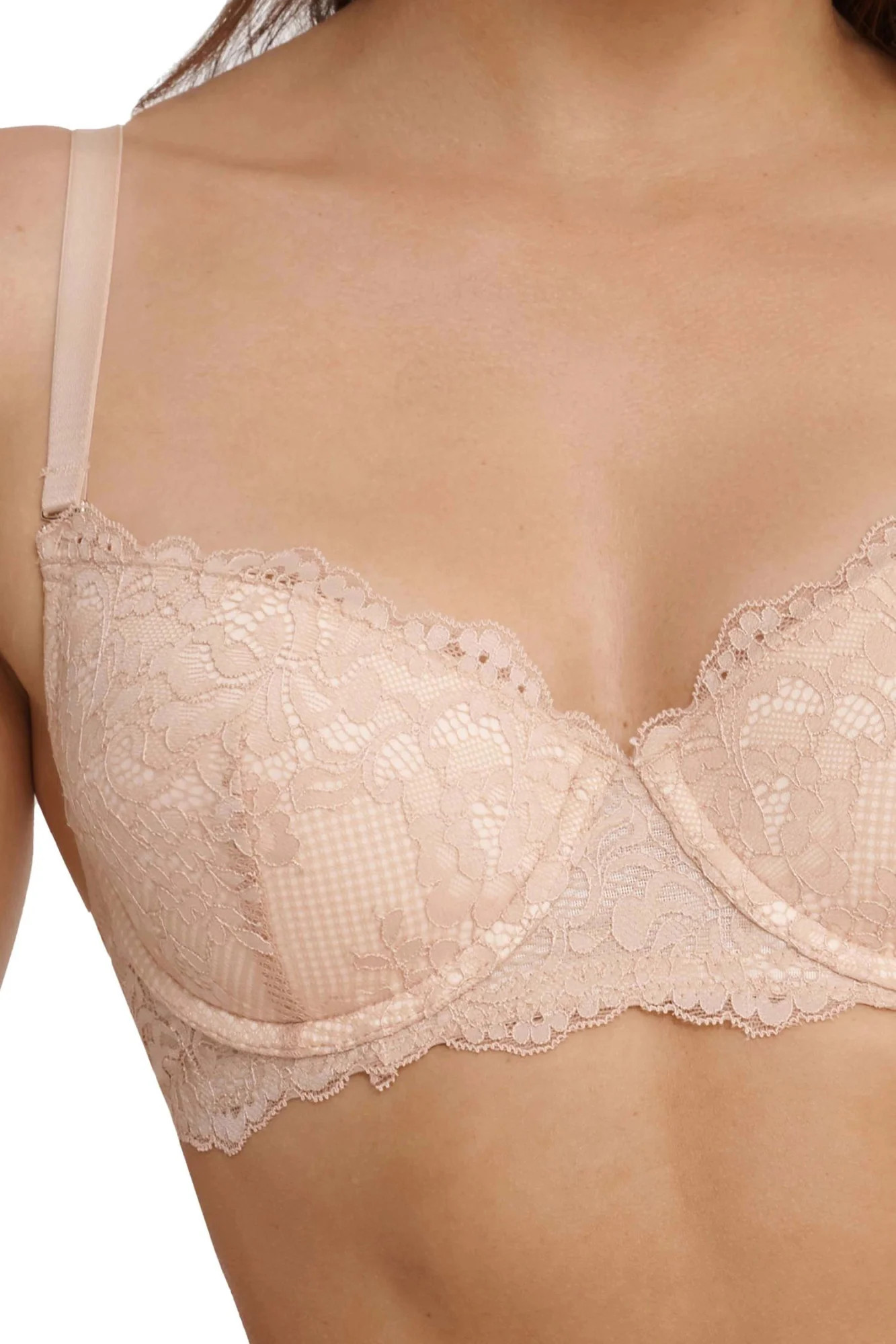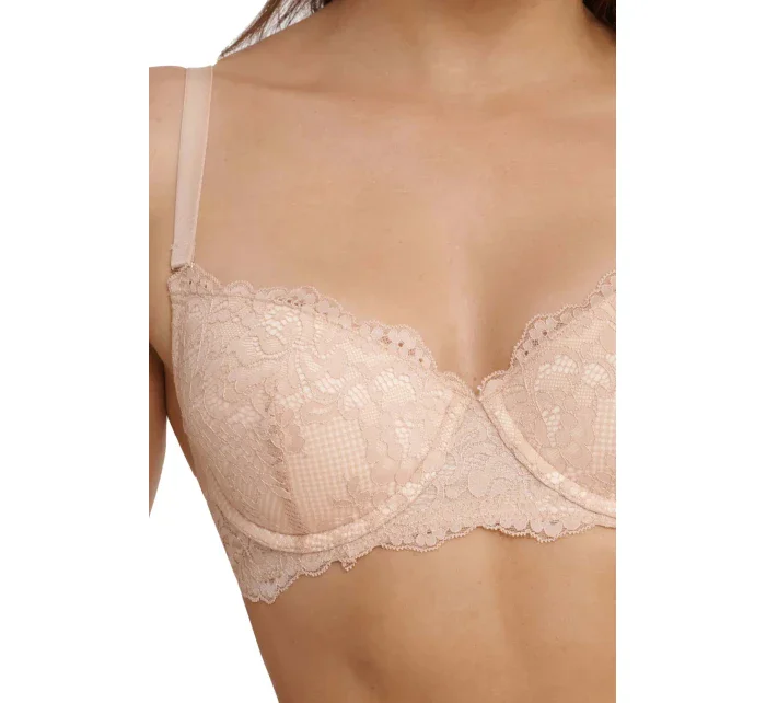 Dámská podprsenka 41075 Galia HENDERSON - béžová barva - push up - košíčky z krajky s květinovým motivem - kostice - vyjímatelné vycpávky - nastavitelná neodepínatelná ramínka - zdobené krajkou - zapínání vzadu na dva háčky s třístupňovým nastavením