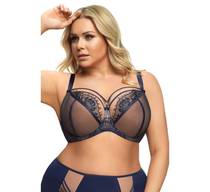 Dámská podprsenka 496 Paradise blue GORSENIA - tmavě modrá barva - z dvojité tylové látky - vrchní část košíčků tvoří béžový tyl a jemná krajka - model je olemovaný hladkou pružnou páskou - nad košíčky je ozdoba ve tvaru jemných pásků - ramínka je možné nastavit, ale nelze je odepnout