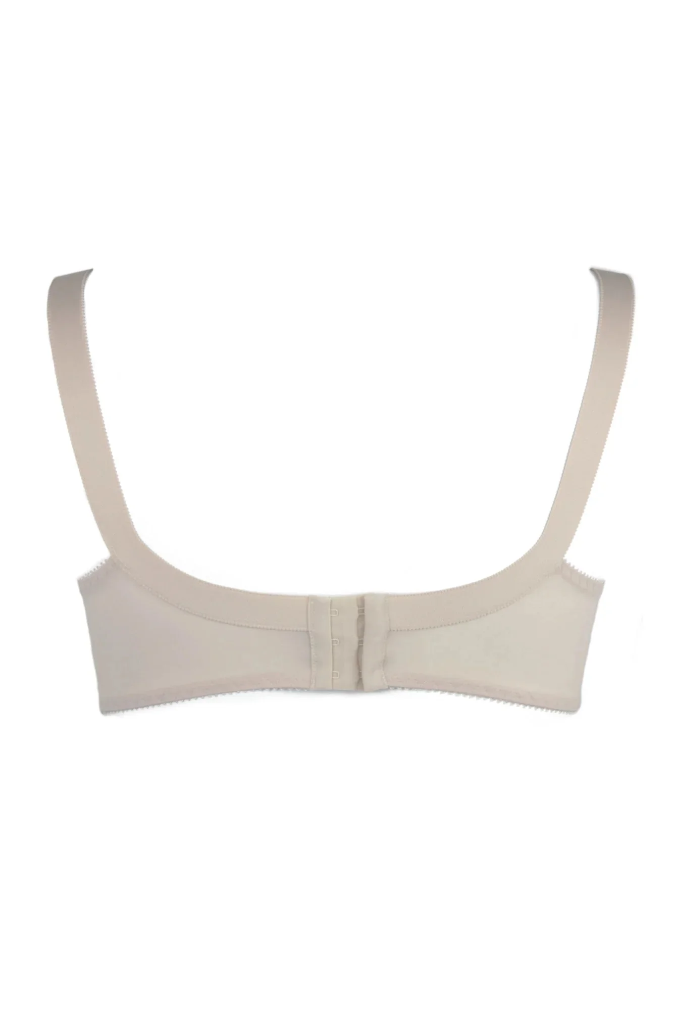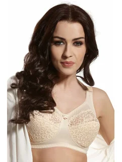 Dámská podprsenka 577 Joanna beige VIKI - béžová barva - silnější ramínka - nevyztužené košíčky s kosticemi - netradiční střih - košíčky jsou zdobené jemnou krajkou - mezi košíčky decentní mašlička na ozdobuMateriálové složení: 78% polyamid +18% elastan + 4%bavlna