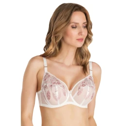 Dámská podprsenka 843 Love game GORSENIA - krémová barva - typ soft - měkká podprsenka s kosticemi - košíčky podšité síťovinou zdobené výšivkou - nastavitelná a neodepínatelná ramínka - boky s kosticemi, které zabraňují prohýbání - zapínání na dva nebo tři háčky s třístupňovým nastavením