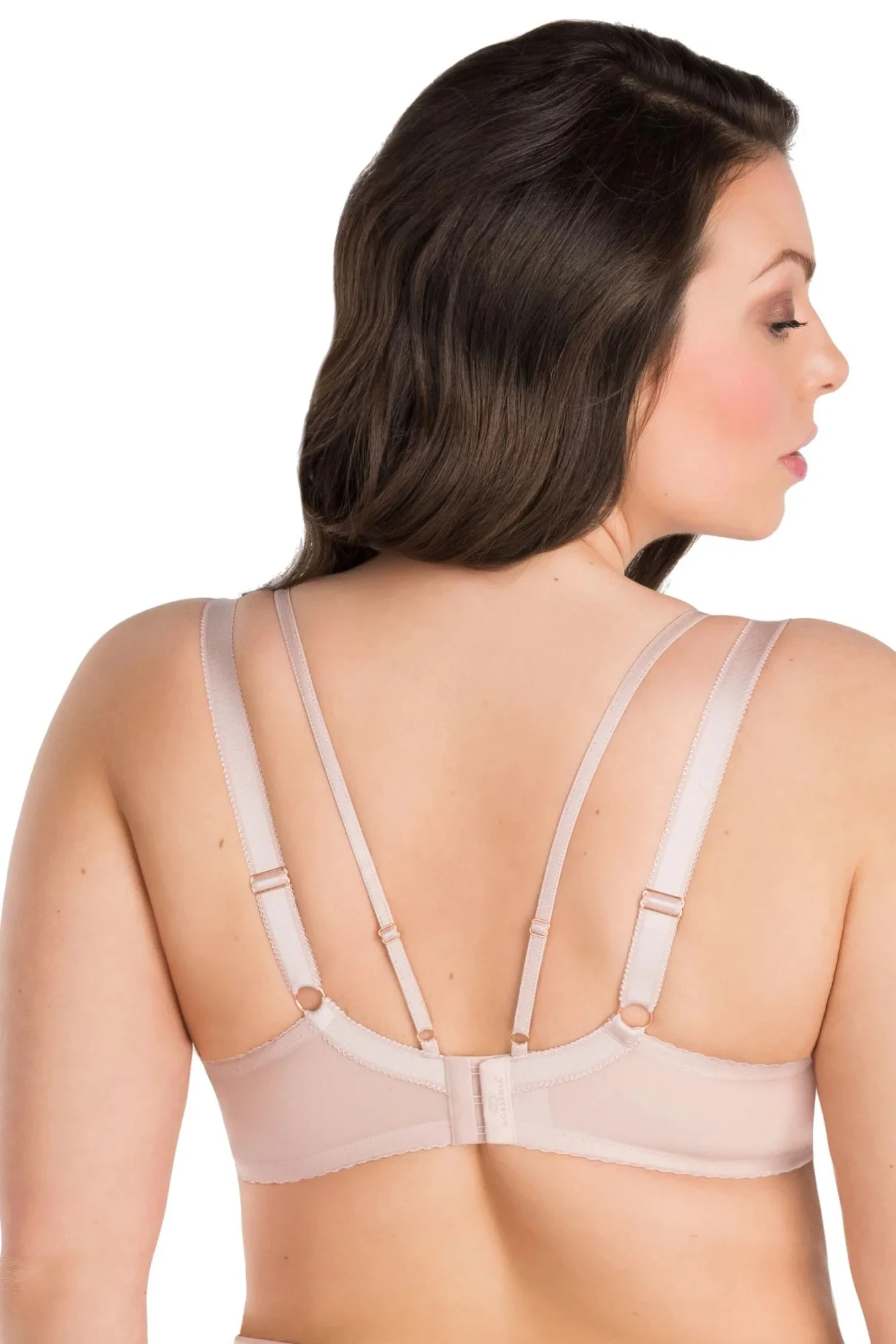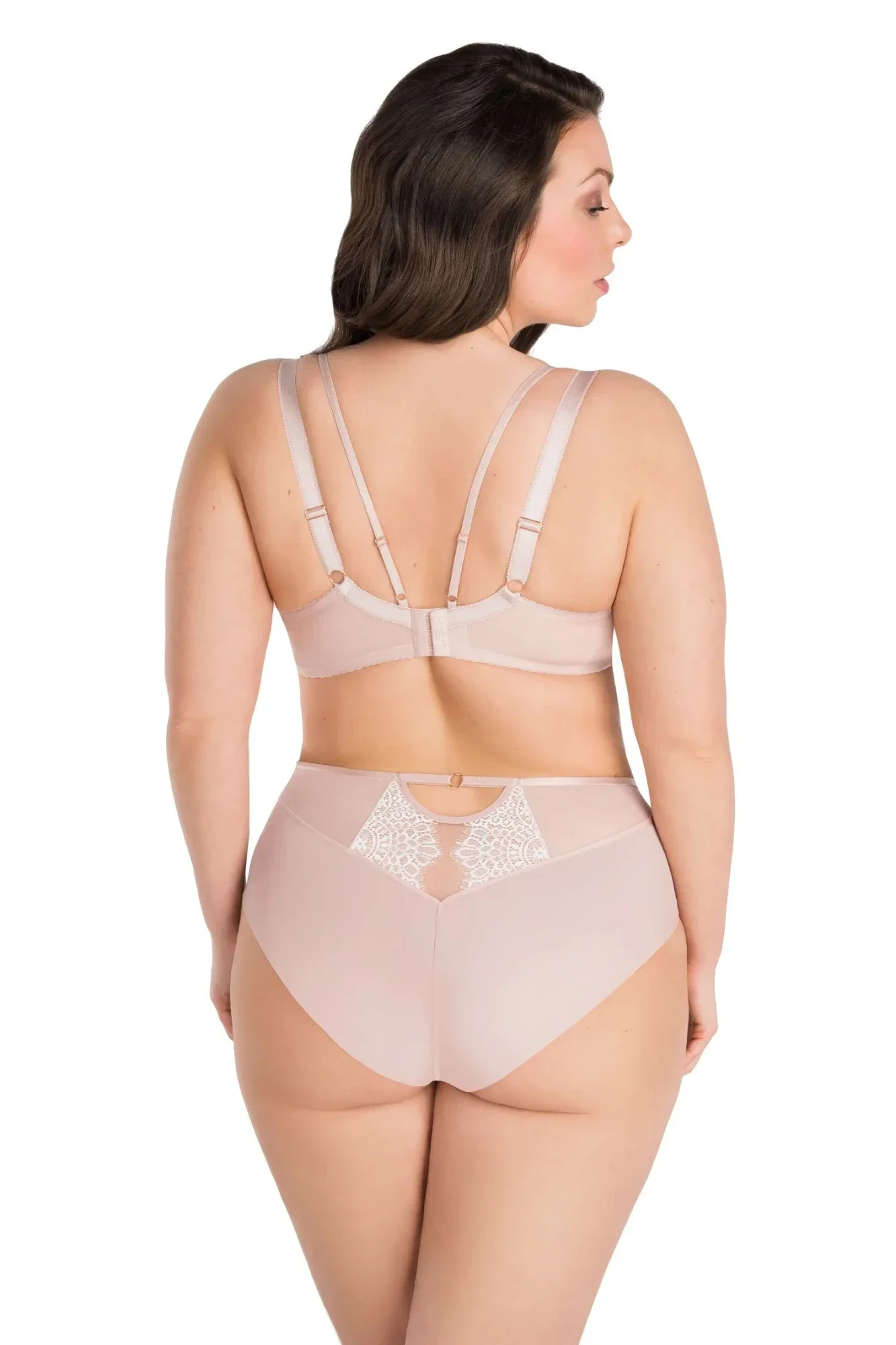 Dámská podprsenka 852 Romantic vibe GORSENIA - béžová barva - nevyztužená podprsenka - typ soft - košíčky jsou ze tří částí, díky kterým jsou prsa kulatá a směrem ke středu - krajková spodní část - horní část z transparentního tylu - kostice zajišťují stabilitu - vyšší střed - mezi košíčky ozdoba a mašlička - ozdobná ramínka nastavitelná a neodepínatelná - zapínání na dva až tři háčky s třístupňovým nastavením