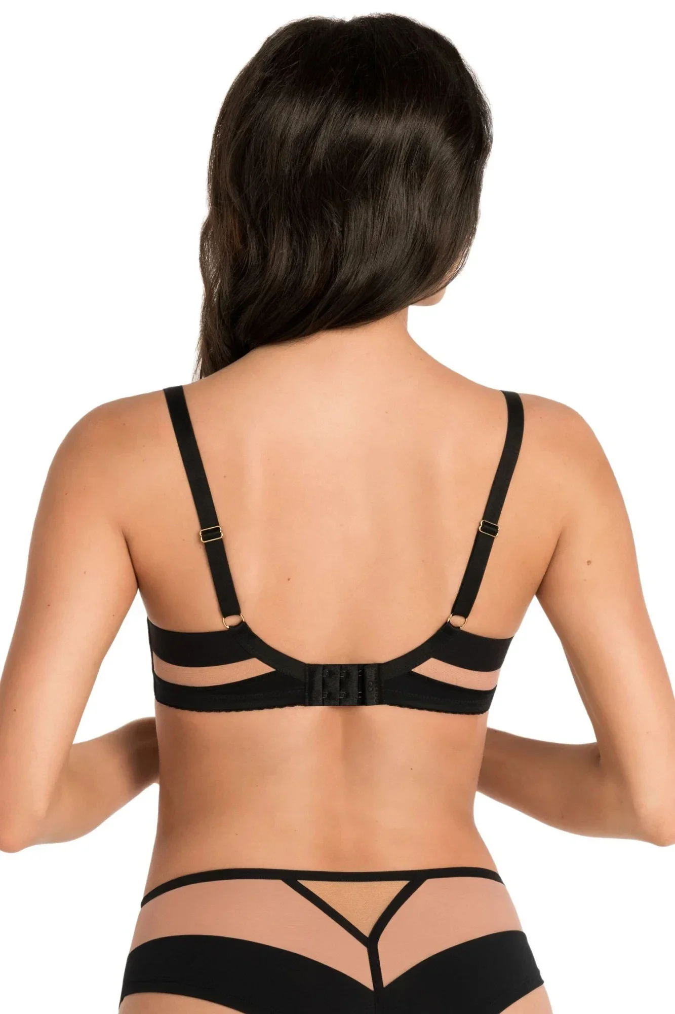 Dámská podprsenka 885 Tesora GORSENIA - béžová barva - měkká podprsenka s kosticemi - poskytuje efekt velmi silného zvednutí a stažení prosu dovnitř - krásná a tvarovaná prsa - třídílné košíčky z tylu se švy přikrytými saténovou páskou - odpínatelný ozdobný řetízek - krásně zvýrazněný výstřih - na zádech zakončená širokou a měkkou gumičkou - boční kostice zabraňují rolování materiálu - neodepínatelná a nastavitelná ramínka ve třech šířkách - zlaté kovové prvky - zapínání na dva nebo tři háčky s třístupňovou regulací obvoduMateriálové složení: 90% polyamid + 7% elastan + 3% polyester