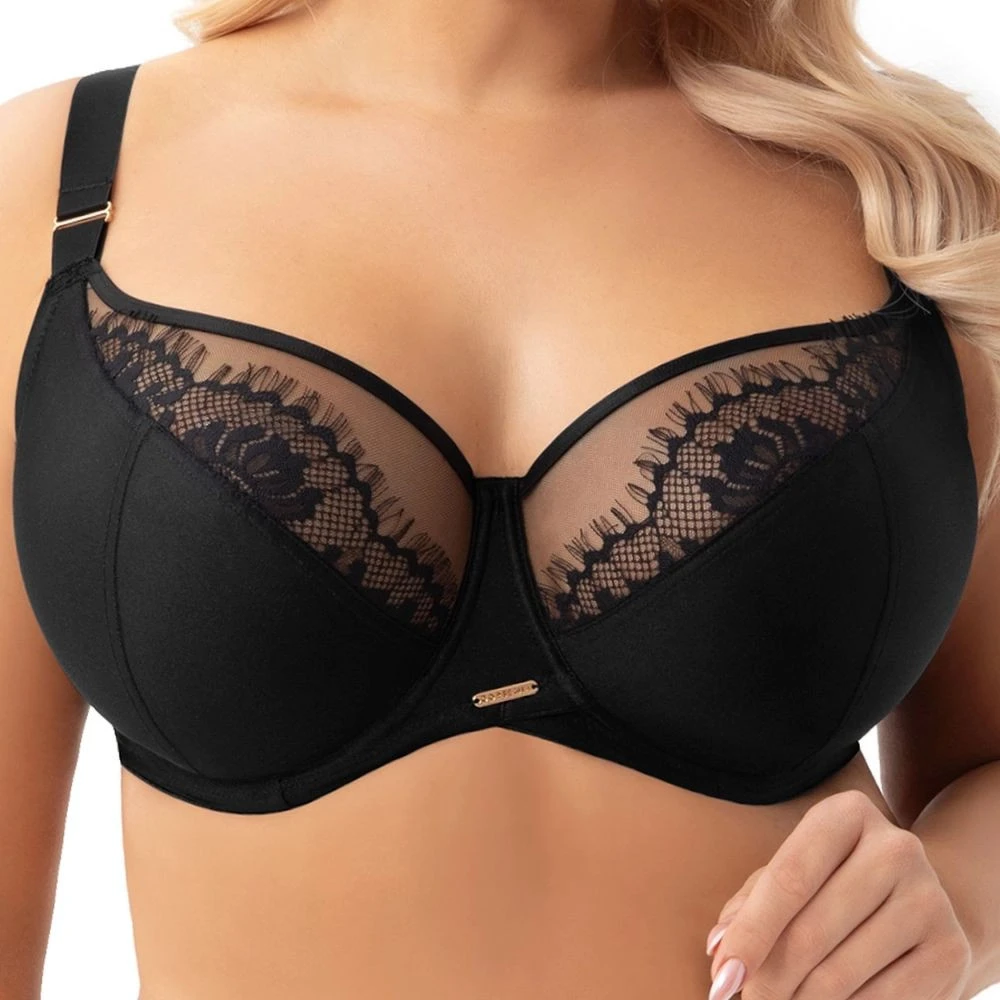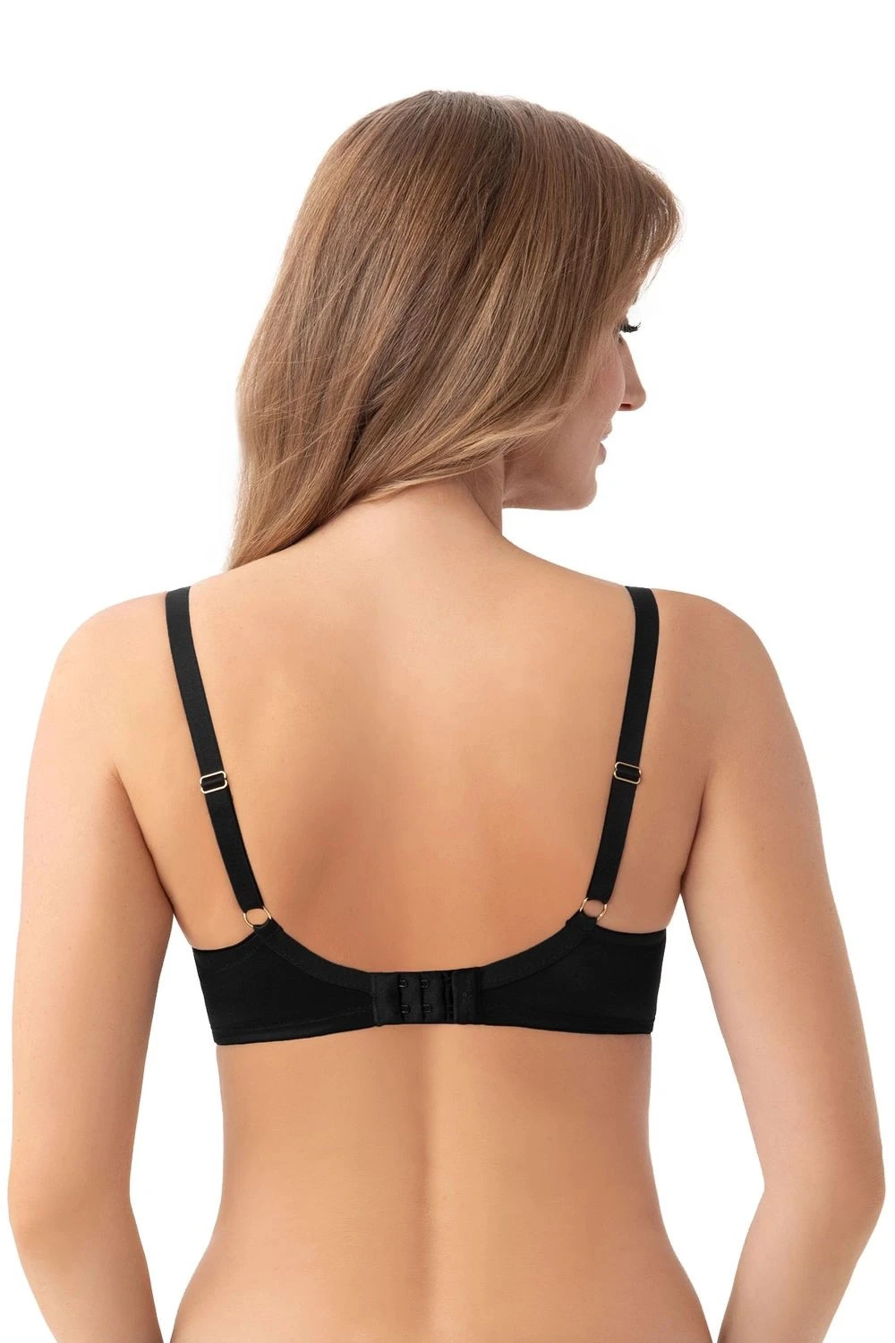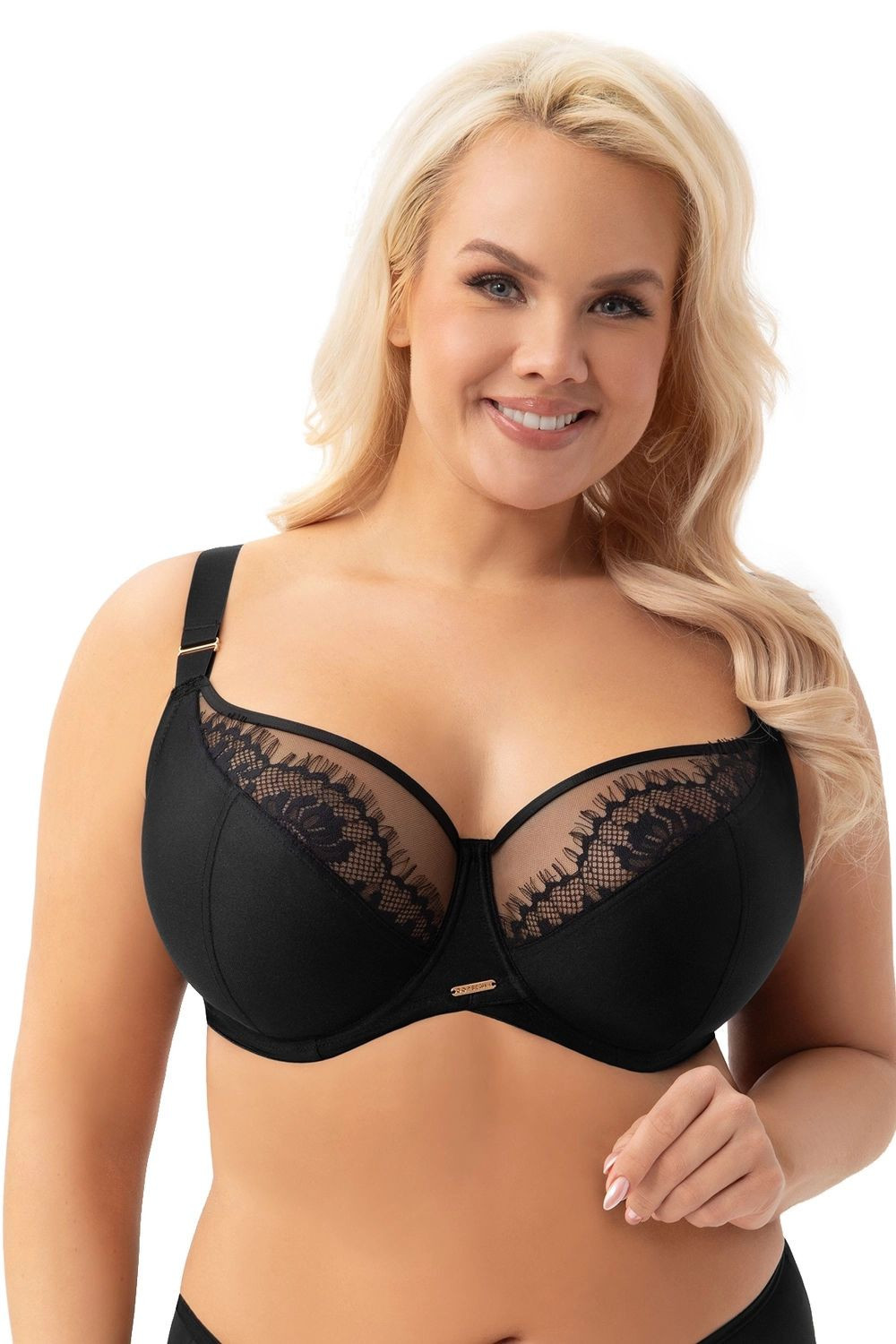 Dámská podprsenka 937 Evia black GORSENIA - černá barva - typ soft - třídílné košíčky zdobené krajkou - s kosticemi - široké boky z hladké lycrové látky - nastavitelná a neodepínací ramínka - zapínání na dva nebo tři háčky s trojí možností nastavení obvodu