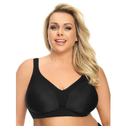 Hladká podprsenka bez nižší kostice, která díky promyšlenému designu poskytuje optimální podporu poprsí. Vhodně vyztužená spodní část je vyrobena ze strečové tkaniny, která umožňuje pokožce dýchat a pomáhá udržovat správnou tělesnou teplotu tím, že odvádí vlhkost. Vhodné také pro sport, měkké mísy. Pružné velrybí kosti na bocích. Široké nastavitelné ramenní popruhy. Složení: 62% polyamid, 24% bavlna, 14% elastan.