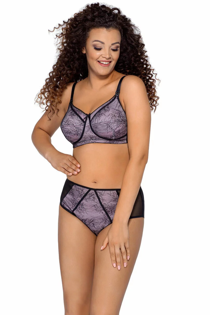 Podprsenka je vyrobená z měkké růžové bavlny obšité lehkým černým materiálem s abstraktním vzorem. Model dokonale nadnáší poprsí. Rozšířený obvod udržuje poprsí na správném a žádoucím místě. Pohodlné klipsy usnadňují rozepínání a zapínání košíčků. Klipsy jsou ozdobené obrázkem v podobě dračího nemluvněte.