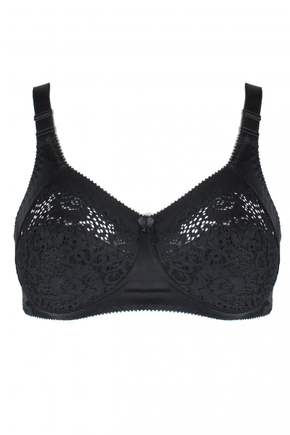 Podprsenka pro ženy s větším poprsím 579 Viki - je ušitá z krajky - vnitřek košíčků je podšitý jemnou bavlnou - má široká ramínka a třístupňové zapínání - krásně podtrhne tvar poprsí