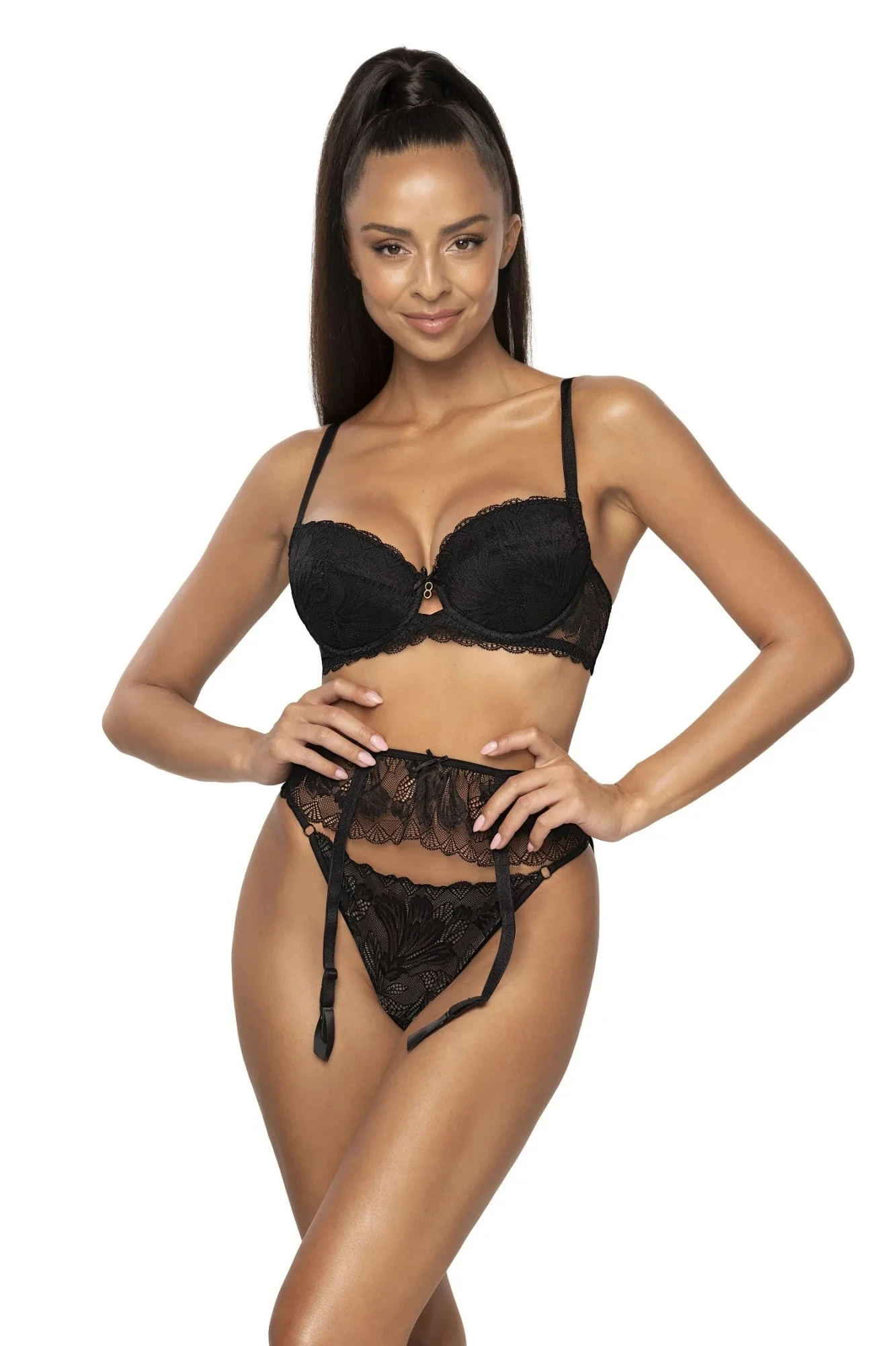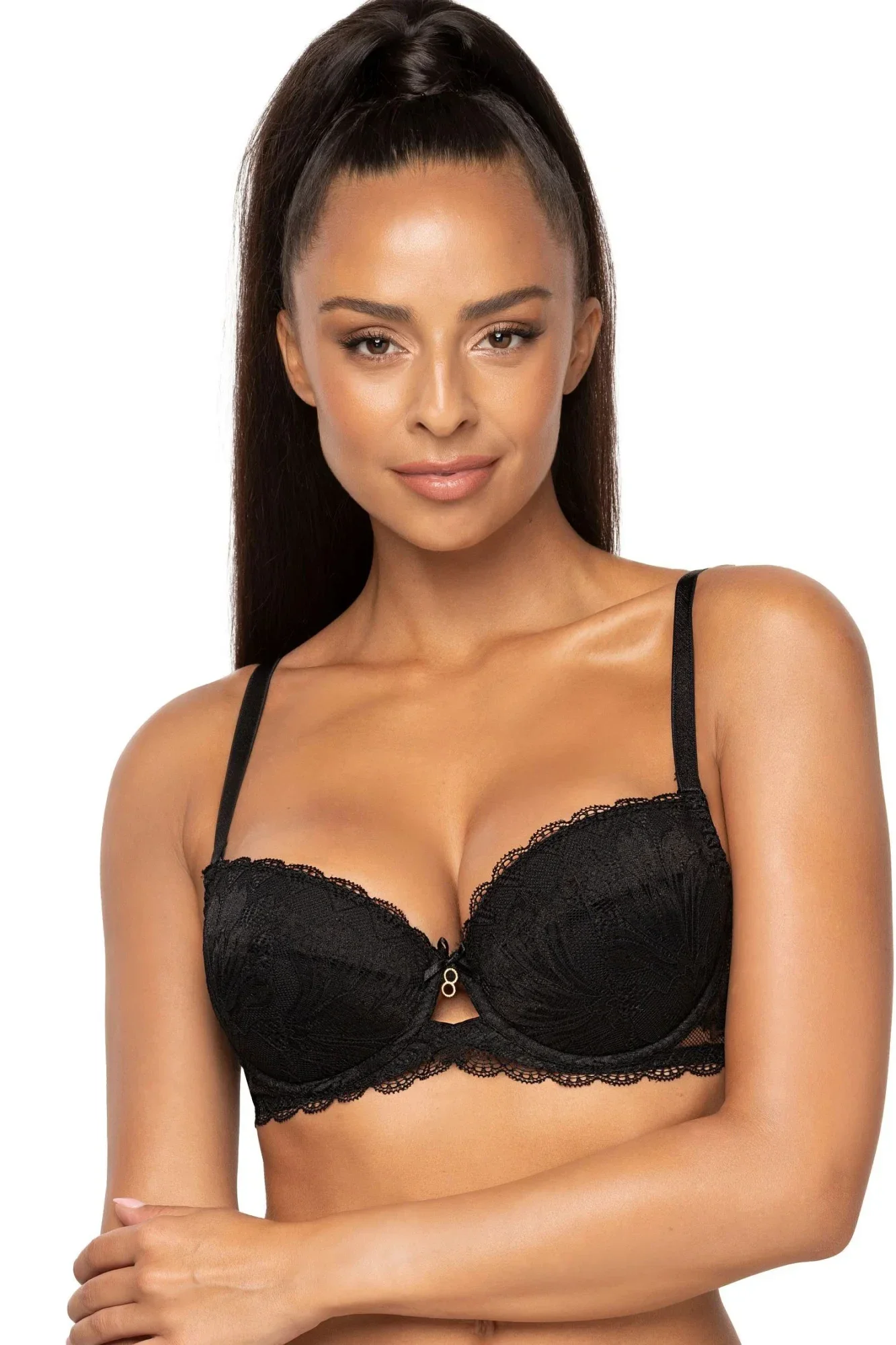 Dámská podprsenka 0203/11 Lindsay black MAT - černá barva - krajkové košíčky - kapsy na vycpávky - s kosticemi na podporu a tvarování prsou - nastavitelná a odepínatelná ramínka - zapínání na háčky na dvě řady s třístupňovým nastavením - materiálové složení: 27% bavlna + 25% polyester+ 24% polyamid+ 19% polyuretan+ 5% elastan
