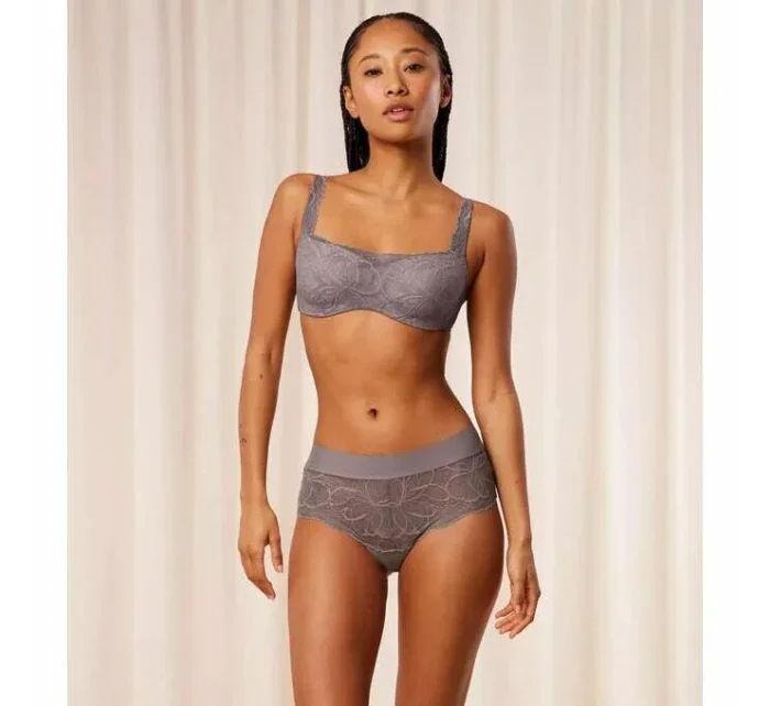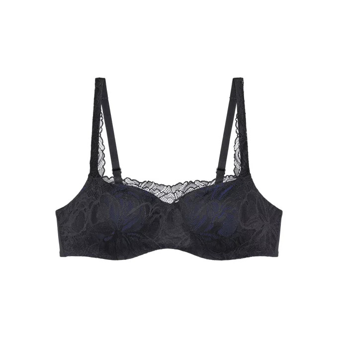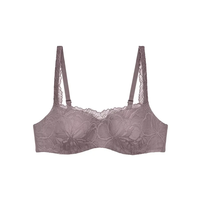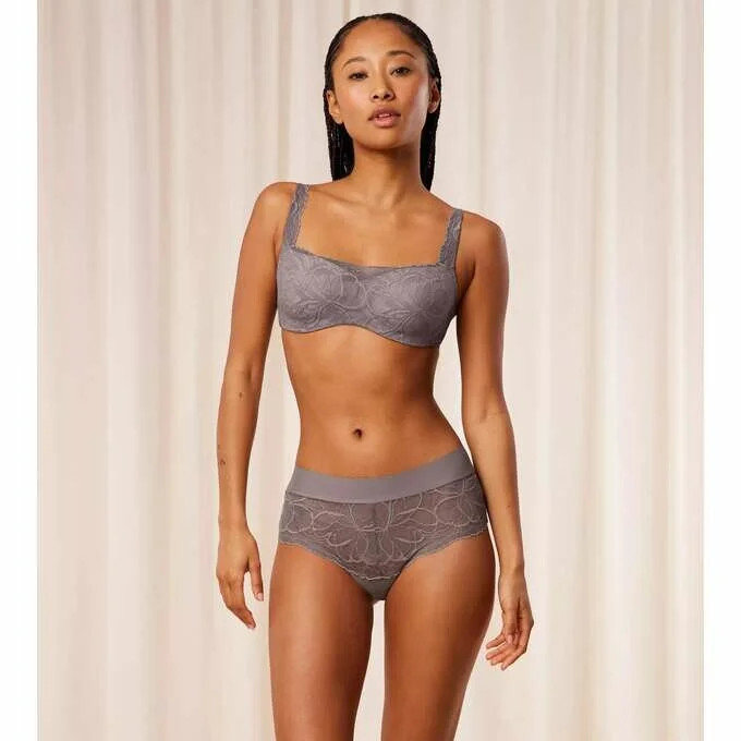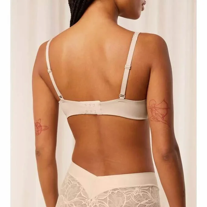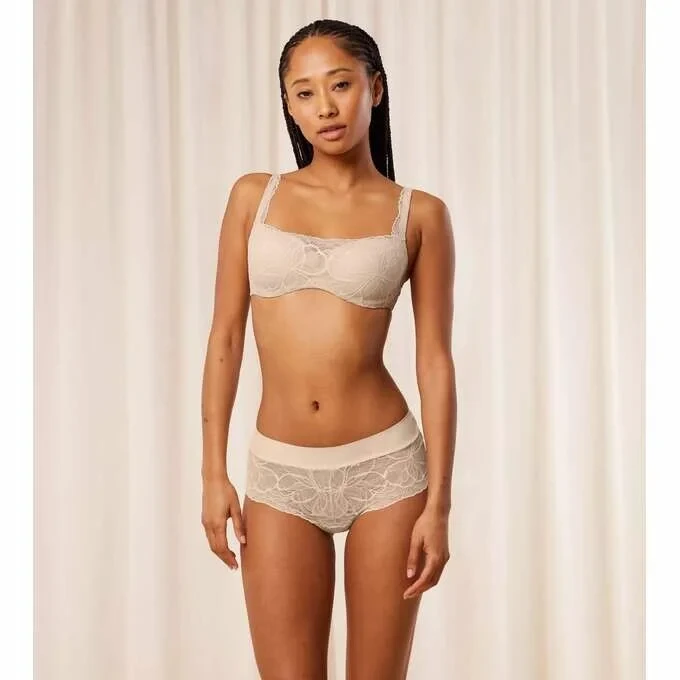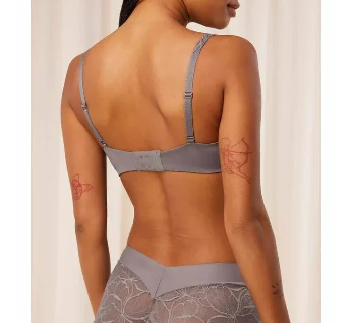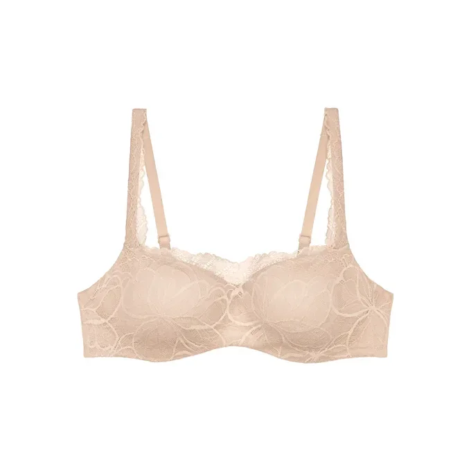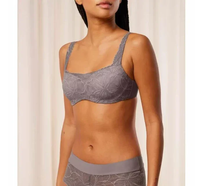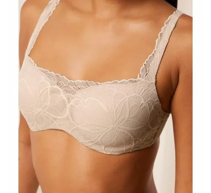 Vyztužená podprsenka typu balkonetka s extra pružnou kosticí a košíčky s jemně se ztrácejícími okraji. Je ideální volbou pro ženy, které hledají oporu a lehkost. Jedná se o podprsenku, na kterou se můžete spolehnout, aniž byste ji zároveň cítila. Je vyrobena z jemné krajky a krémově hebkého mikrovlákna, které je částečně recyklované.