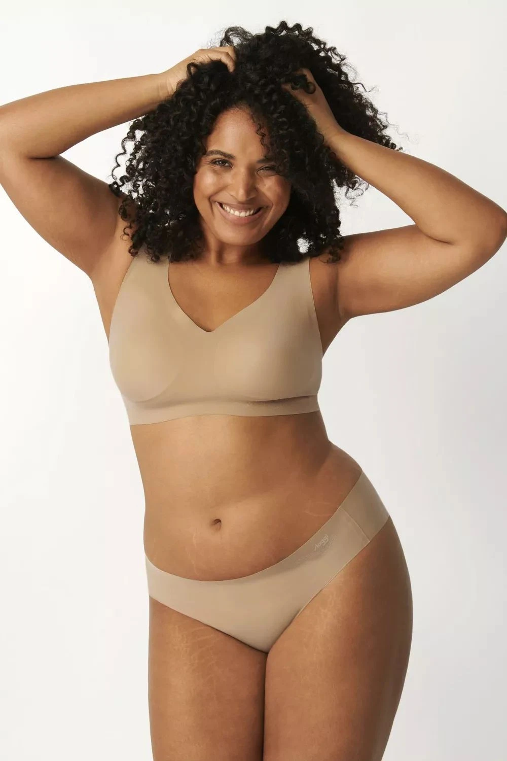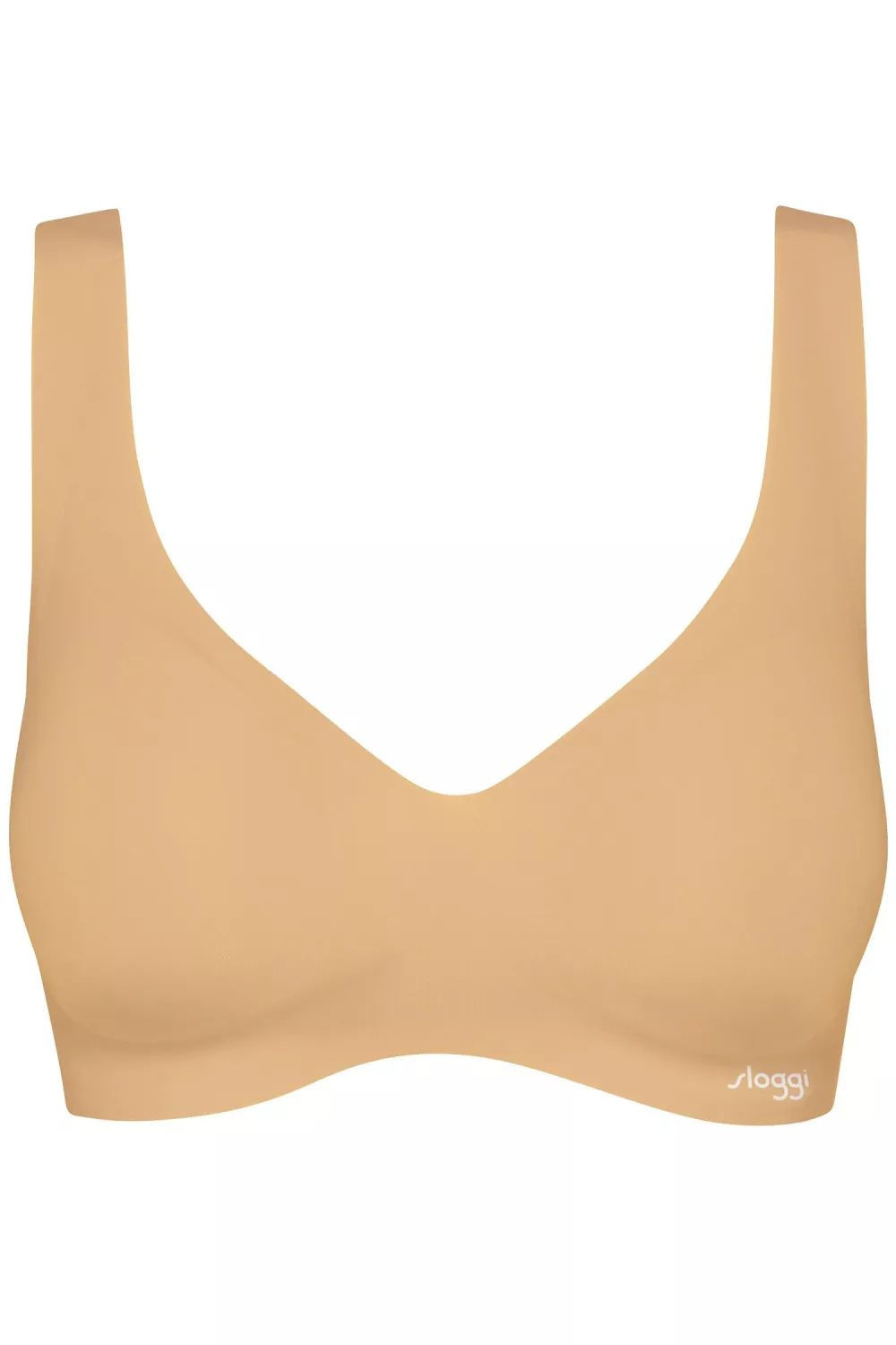 Dámská podprsenka Bralette Zero Feel ex Sloggi - béžová barva - ze super hladké a lehké 3D ZERO dvojvrstvé tkaniny - odnímatelné a prodyšné vycpávky - měkce vyztužené push-up košíčky - dekolt ve tvaru V - bez kostic - ploché okraje, švy i košíčky - široké boky a zadní díl pro ultra oporu a držení - technologie Activated Silk™ odvádí vlhkost - nezanechává skvrny ani zarudnutí na pokožce - zcela neviditelná pod oblečením