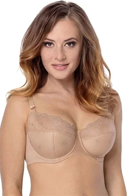 Polovyztužená podprsenka, jejíž košíčky jsou vyrobené z mikrovlákna. V horní části košíčků je jemná látka ozdobená efektní výšivkou. Ramínka není možné odepnout. Model ideálně obepíná, udržuje a nadnáší poprsí. Složení: 49% polyamid, 28% polyester, 12% bavlna, 9% elastan, 2% jiné
