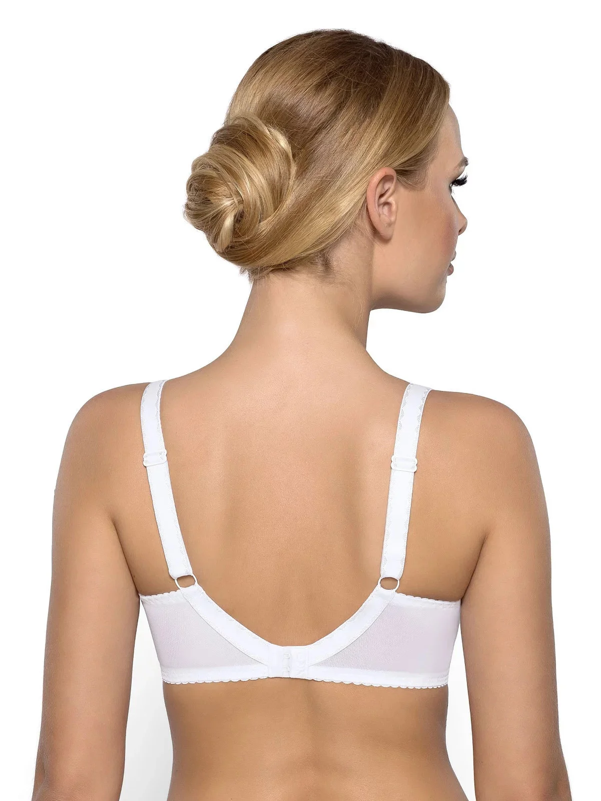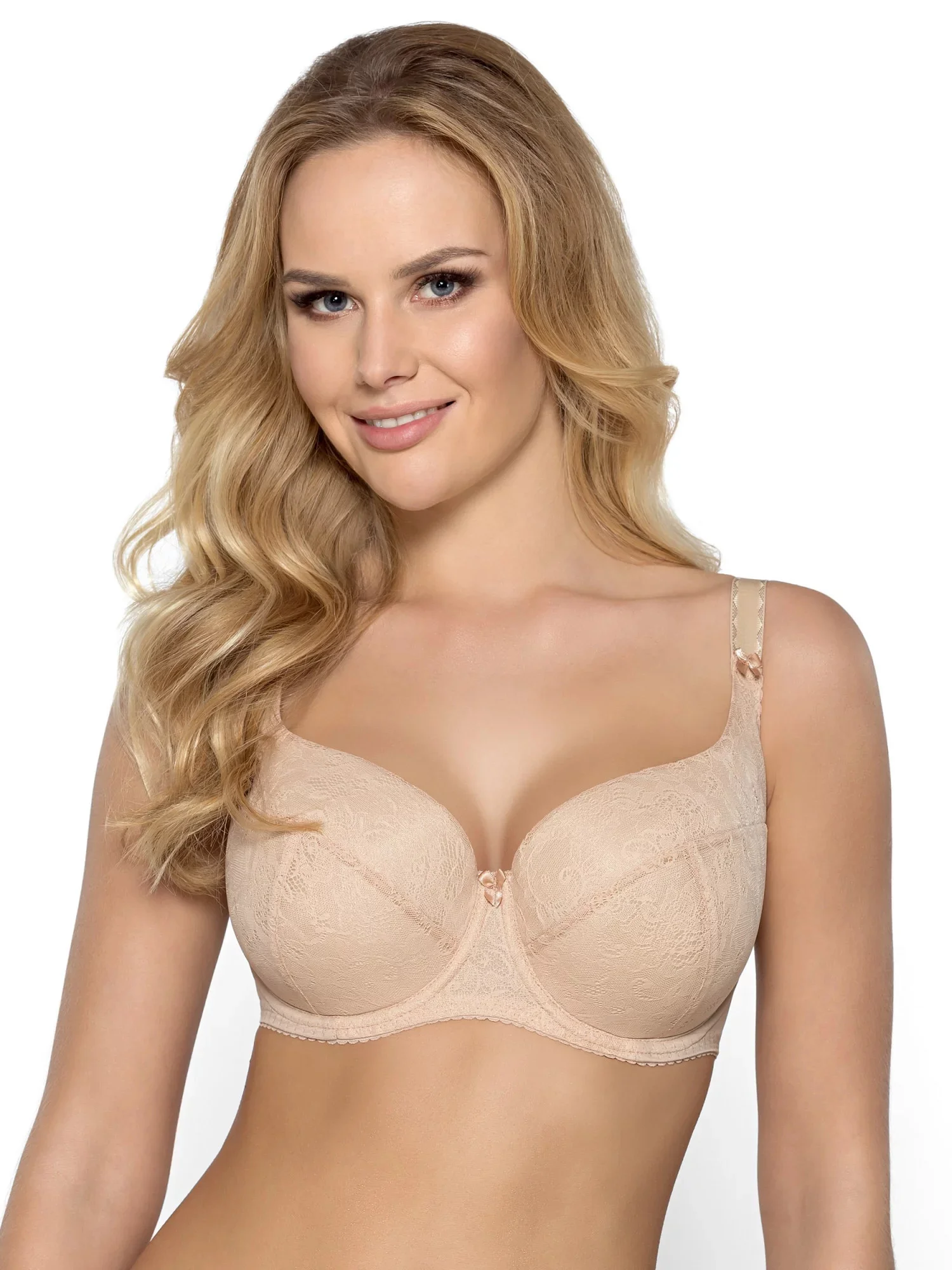 Klasická vyztužená podprsenka. Košíčky a můstek modelu jsou pokryté jemnou krajkou. Zadní díly jsou ušité z pružné lycry. Vnitřní strana košíčků je podšitá 100 % bavlnou. Podprsenka krásně obepíná a tvaruje poprsí. Ramínka je možné nastavit, ale nelze je odepnout. Šířka ramínek závisí na rozměru a velikosti podprsenky. Model se zapíná vzadu na háčky. Celkový dojem z modelu doplňují jemné mašličky umístěné ve středu podprsenky a v místě napojení ramínek na košíčky.
