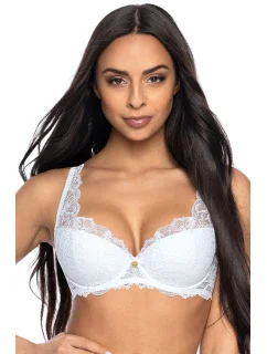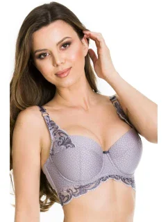 Poloměkká vyztužená krajková podprsenka s květinovým motivem. Vnitřek mísy je vyložen bavlnou. Boky vyztužené svislou velrybí kostí. Ozdobné, nastavitelné popruhy, neodnímatelné. Model dokonale nadnáší a podpírá poprsí.