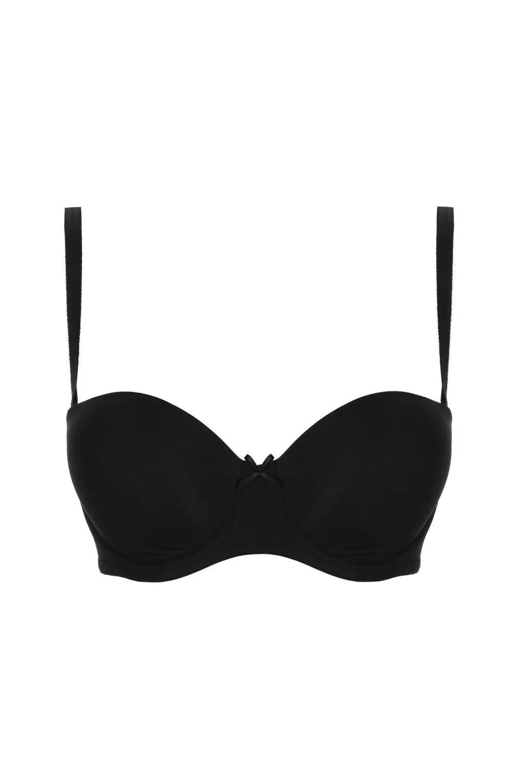 Dámská podprsenka 23446 Raff black HENDERSON - černá barva - push up košíčky - hladká podprsenka - po celém vnitřním obvodě opatřená silikonovým páskem zabezpečujícím držení korzetové podprsenky i bez ramínek - střed podprsenky je zdoben drobnou mašlí - podprsenka je opatřena kapsičkami pro vycpávky - odnímatelná ramínka - vyjímatelné vycpávky