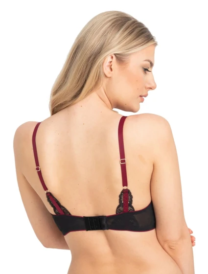 Dámská podprsenka Charlotte A479 beige Samanta - béžová barva - z krajky s prolamovaným ornamentálním motivem - košíčky z tepelně profilované pěny s push up výplní - mezi košíčky mašlička - obvod z krajky a elastického tylu - krajkové zdobení na zádech - nastavitelná a neodpínatelná ramínka - zapínání, kroužky a regulátory ve zlaté barvě - zapínání na dvouřadé háčky s třístupňovým nastavením - certifikát Oeko-Tex STANDARD 100®