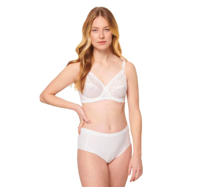Dámská podprsenka Compliment white Triumph - bílá barva - měkké krajkové košíčky - s kosticemi - dokonale tvaruje a podpírá poprsí - nastavitelná ramínka - vhodné pro ženy s větším poprsím