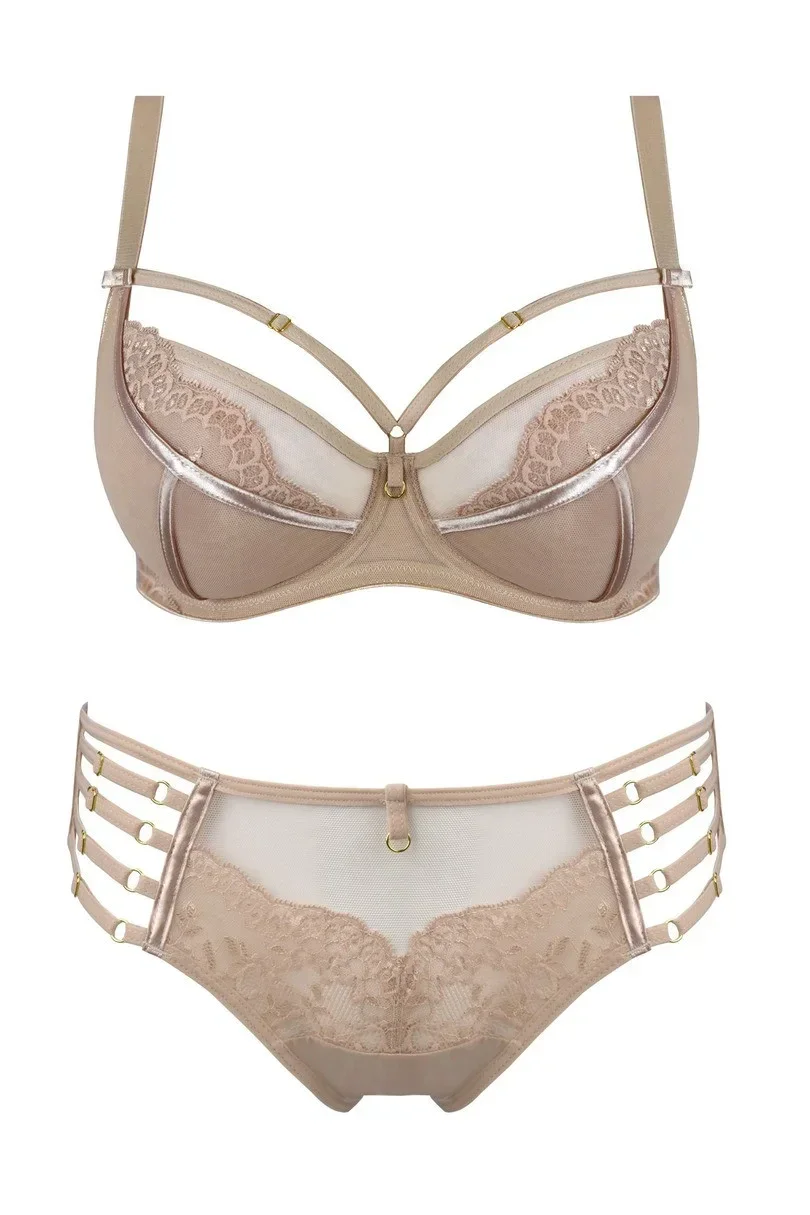 Spodní část košíčků je vyrobená ze dvojitého tylu. Prošití zakrývají saténové pásky. Vrchní část košíčků lemuje krajka. Dekolt zdobí pásky, jejichž délku je možné nastavit.