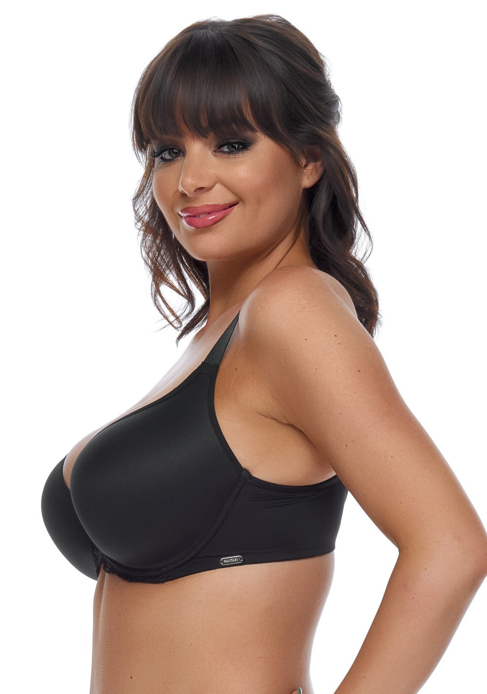 Dámská podprsenka značky Fantasy. Tato podprsenka je lehce vyztužená, košíčky jsou hladké. Pevně všitá ramínka jsou lehce délkově nastavitelná. Kolem spodní části košíčků je našitá krajka a mezi košíčky je stříbrná aplikace se štrasovým kamínkem. Střed mezi košíčky je nižší. Zadní zapínání je na dva háčky a tři pozice.