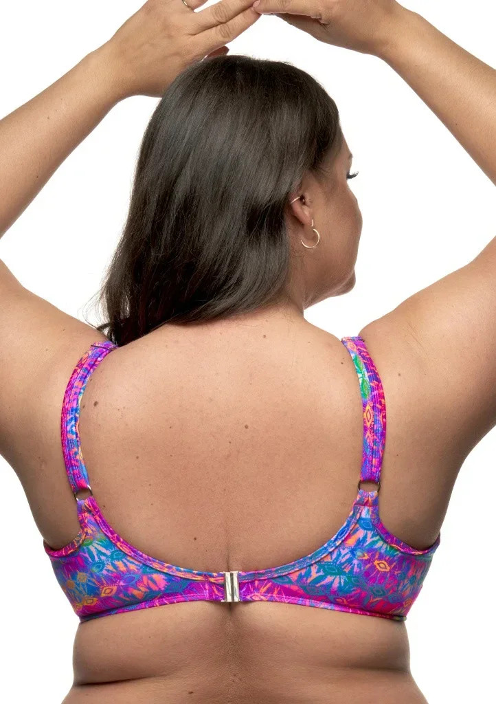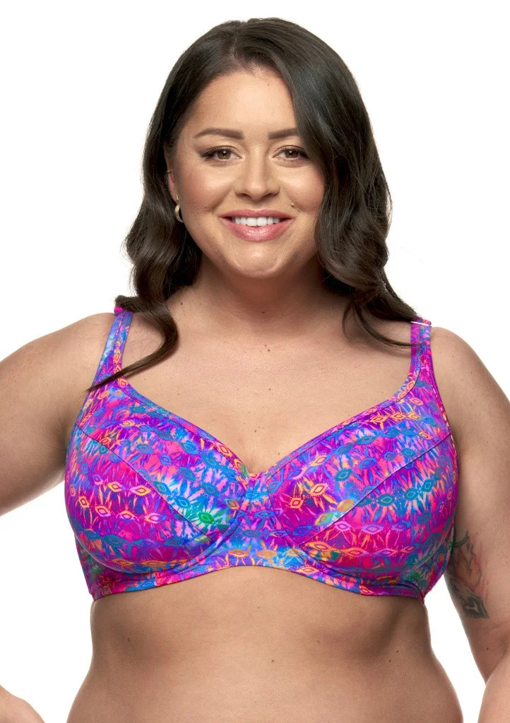 Dámské plavky Fantasy z kolekce Amy. Dámský horní plavkový díl má lehce vyztužené podšité košíčky s kosticemi. Podprsenka má klasický střih s vyšším středem a je vhodná i pro větší poprsí. Širší ramínka jsou pevně všitá, délkově lehce nastavitelná. Obvod podprsenky je vyšší, vyztužen flexibilními silikonovými kosticemi, které se Vám přizpůsobí. Zapínání je umístěno v zadní části obvodu pomocí kovové spony. U těchto plavek lze libovolně kombinovat spodní a horní díl z dané kolekce.