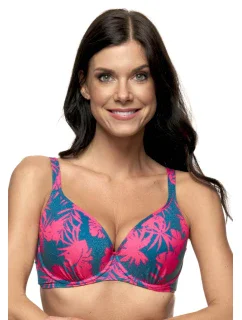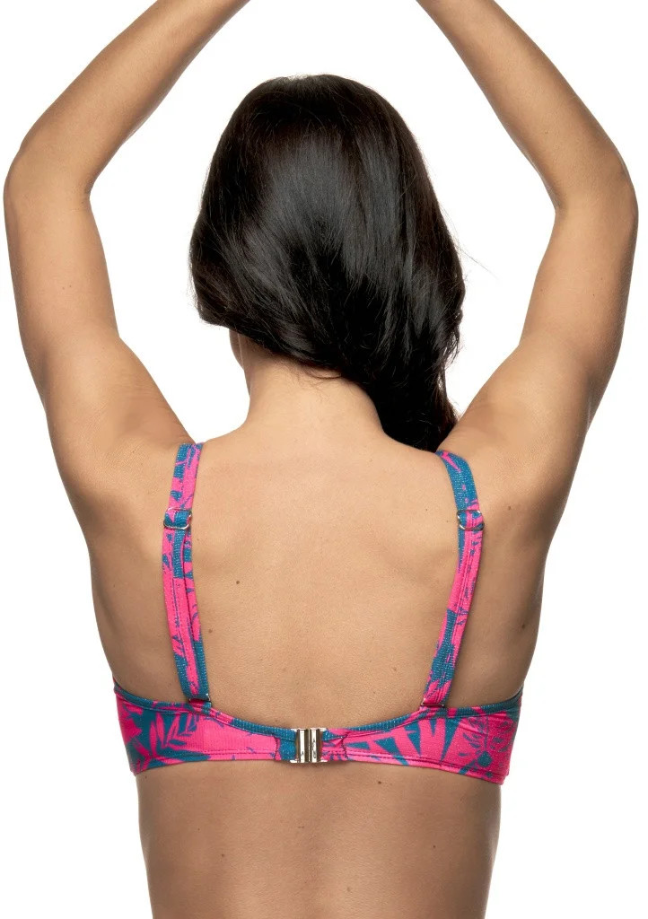 Dámské plavky Fantasy z nové kolekce Erika. Dámský horní plavkový díl s elegantním barevným vzorem má jemně vyztužené nařasené košíčky s kosticemi a nižší střed. Plavky lemuje úzký proužek ve stejné barvě jako je podprsenka. Střih košíčků a středně široký obvod podprsenky s bočními pružnými kosticemi Vám zaručí pevné a pohodlné nošení. Podprsenka má nastavitelná ramínka, která lze jednoduše zapnout, nebo uvázat za krk. Zadní zapínání je ukončeno pevně všitou sponou na záháknutí. Plavky jsou české výroby a koupí tohoto výrobku podpoříte produkci českého oděvního průmyslu.