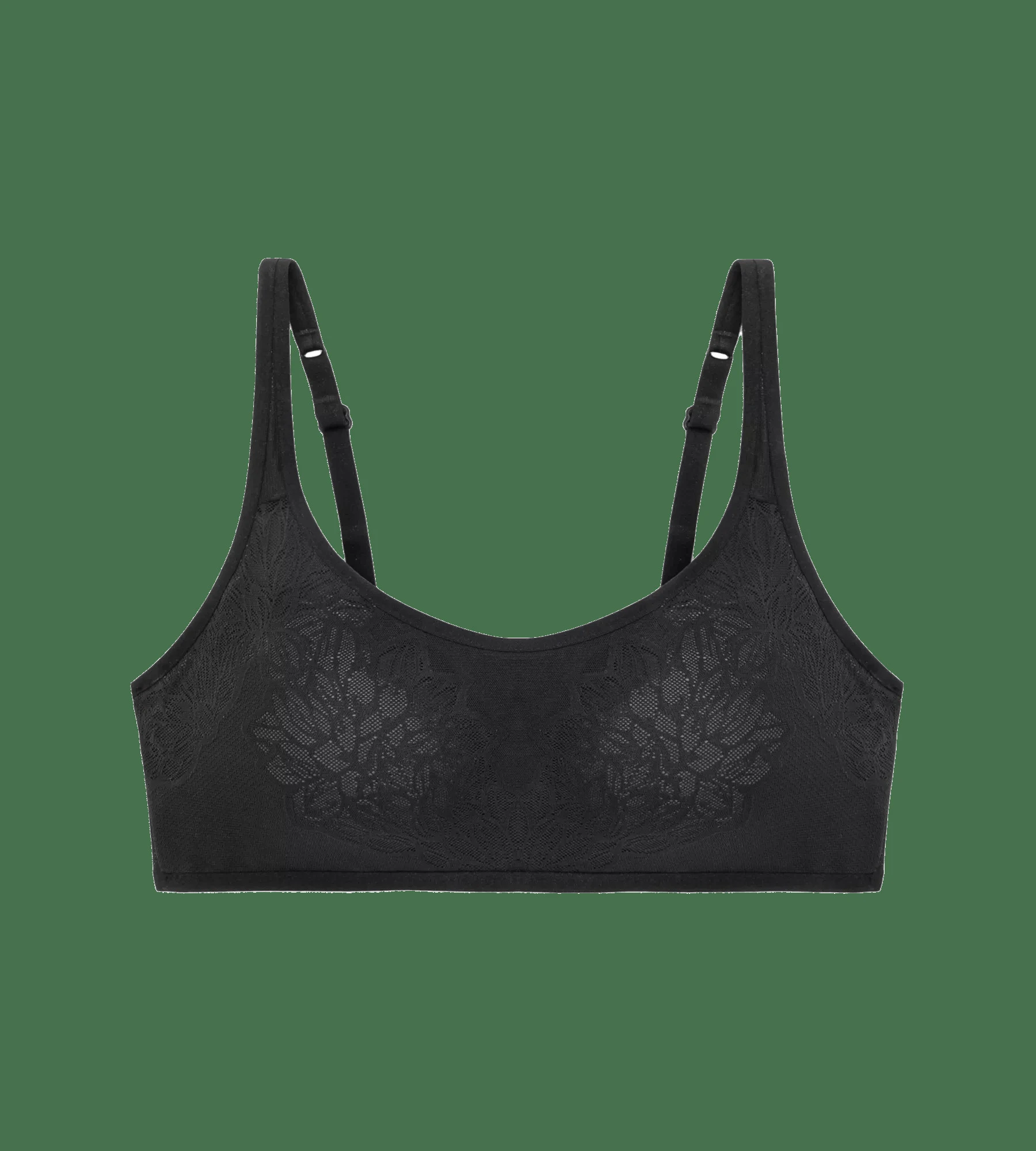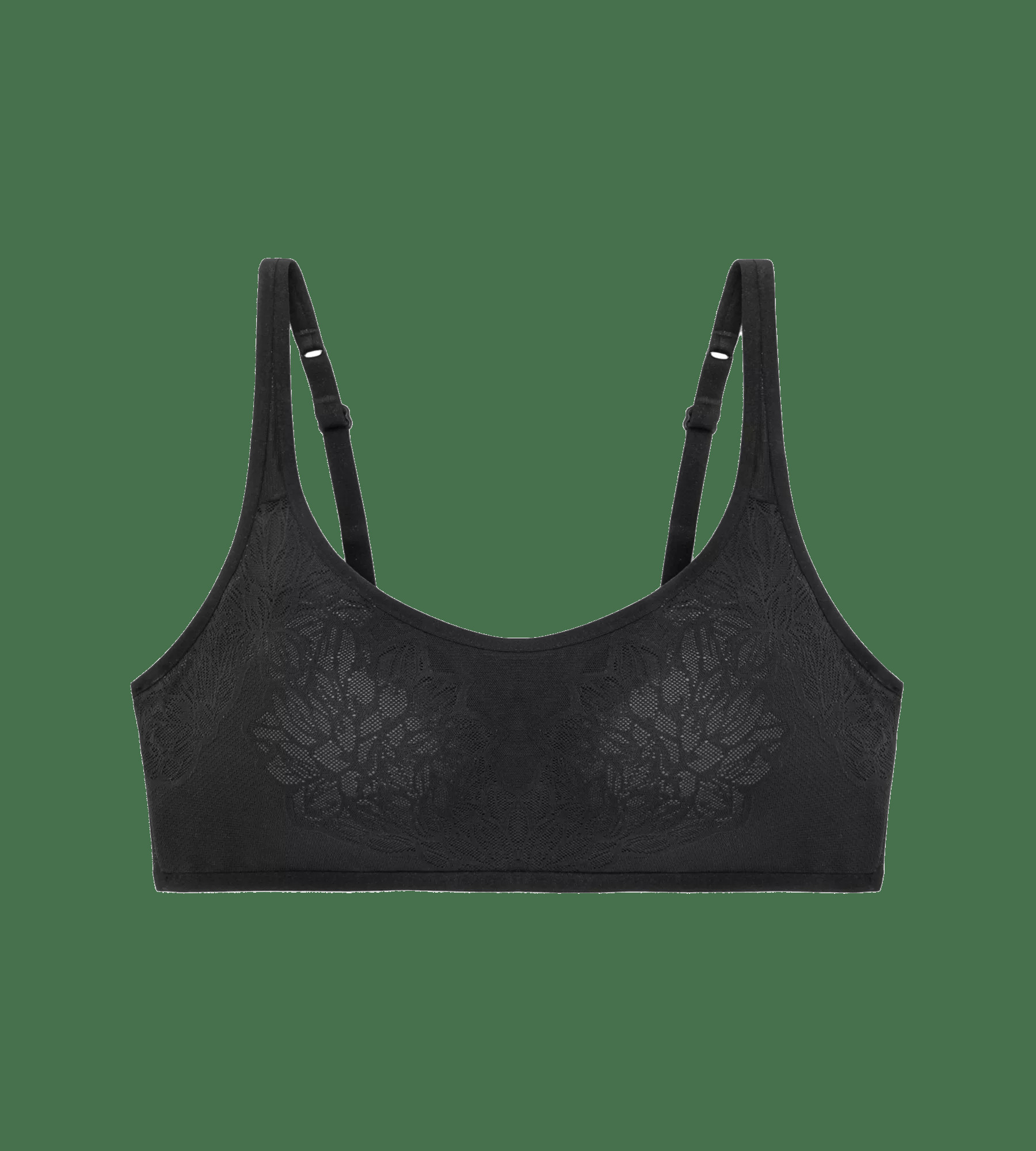 Přední část z měkkého materiálu potaženého 4D strečovou krajkou pro dokonalé přizpůsobení poprsí