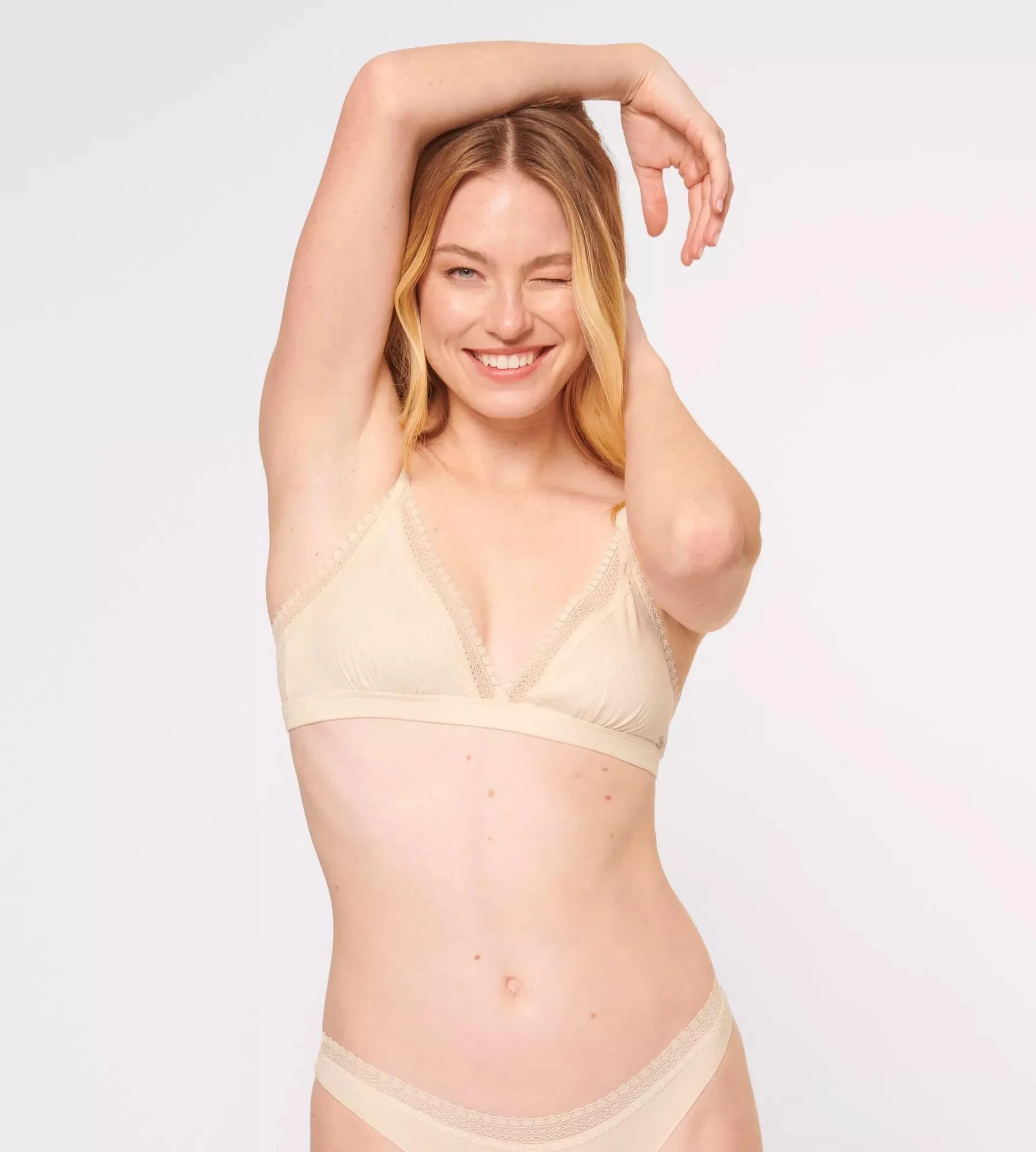 Zdravíčko novému oblíbenci! Tato braletka GO RIBBED je vyrobená z měkké žebrované organické bavlny s jemnými krajkovými lemy a je radost ji nosit.