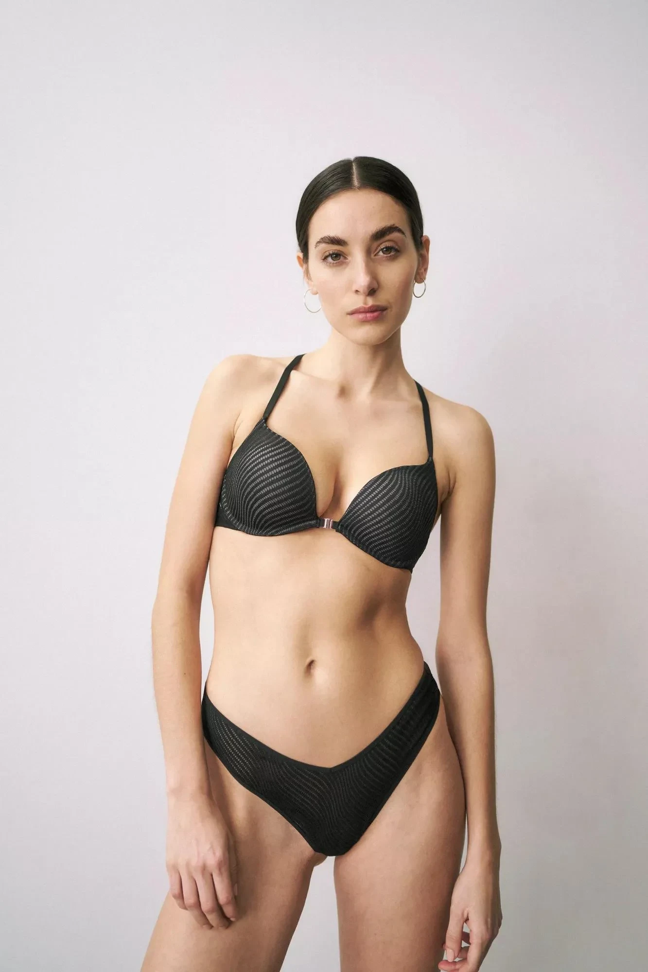 Luxusní a současně trochu ostrá. Tuto krajkovou push-up podprsenku jsme navrhli tak, abyste v ní vynikla. Od ostatních podprsenek se odlišuje zapínáním v přední části, hebkou zadní částí a lehounkým grafickým designem.