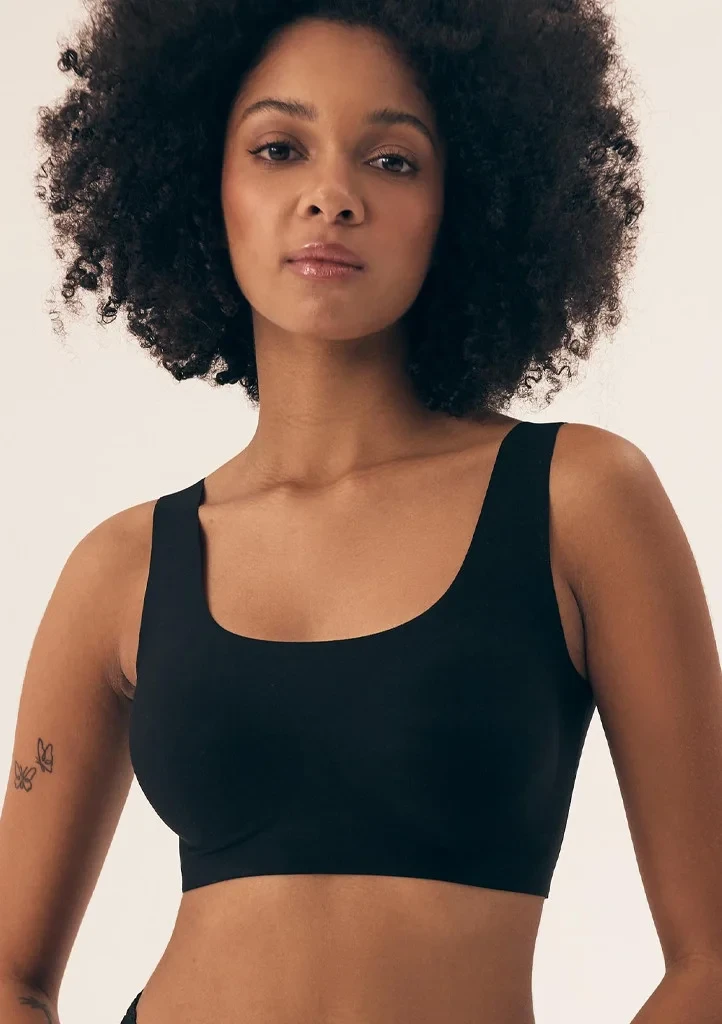 Černá podprsenka Henderson je ideální volbou pro ženy, které ocení pohodlí a univerzální styl. Je bez kostic a má vyjímatelné vycpávky, které si snadno přizpůsobíte. Díky hladkému, příjemnému materiálu se podprsenka přizpůsobí vaší postavě a nebude vás nikde tlačit. Minimalistický design a elegantní černá barva dělají z tohoto kousku ideální doplněk pro každodenní nošení.