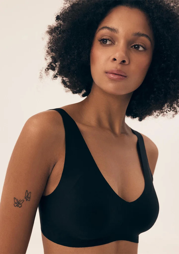 Černá podprsenka Henderson kombinuje pohodlí a praktický design. Tento model je bez kostic a má vyjímatelné vycpávky, které se dají snadno přizpůsobit. Zapínání na zádech je na tři háčky a tři pozice, což zajišťuje perfektní přizpůsobení vaší postavě. Měkký, elastický materiál se krásně přizpůsobí a nabízí komfort po celý den. Skvělá volba pro každodenní nošení!