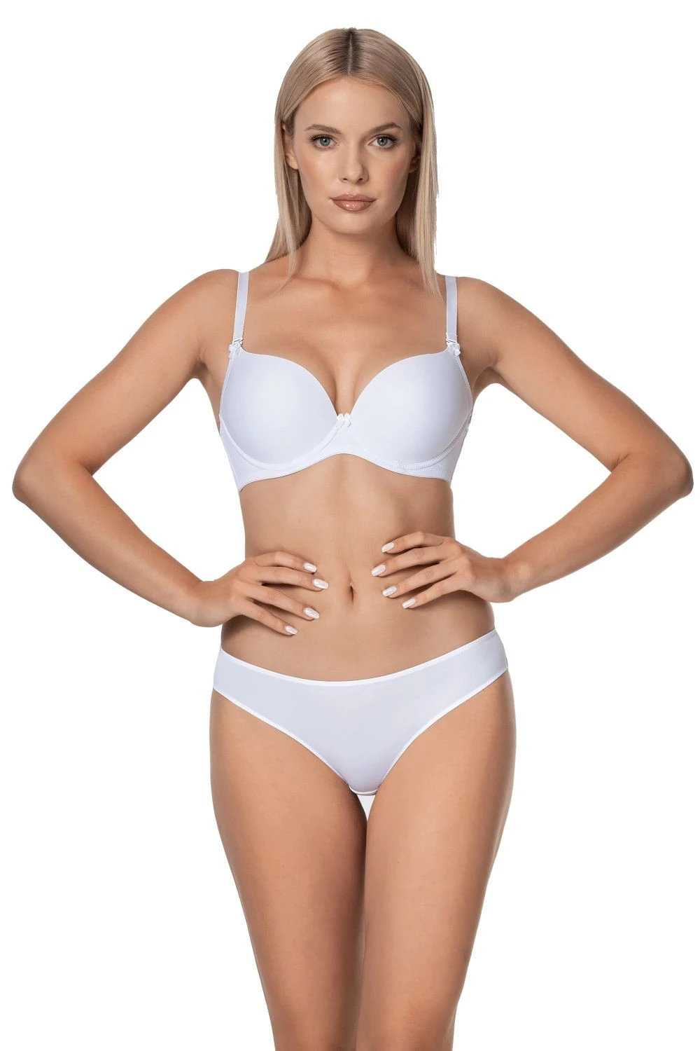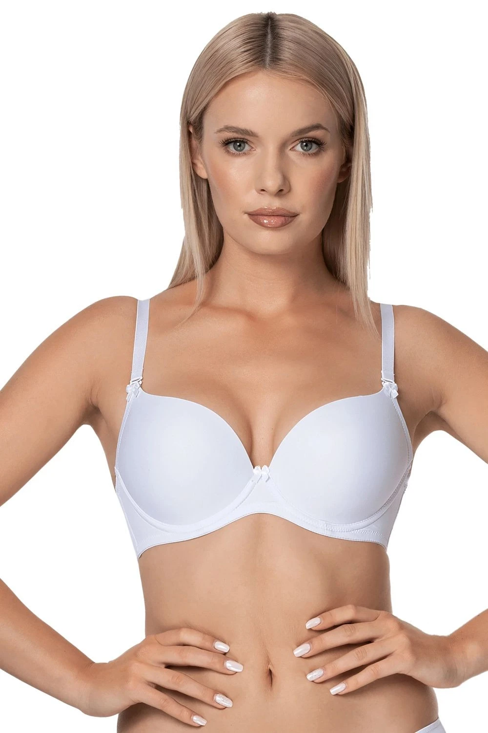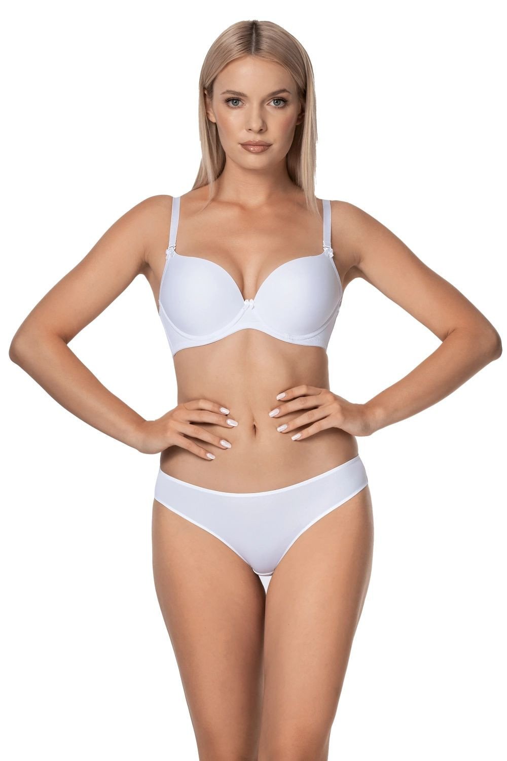 Dámská podprsenka Ida white NIPPLEX - bílá barva - typ push-up - hladké košíčky - mezi košíčky zlatá ozdoba - hladké boky - regulovatelná a odepínací ramínka - zapínání je dvoustupňové a dvouřadové