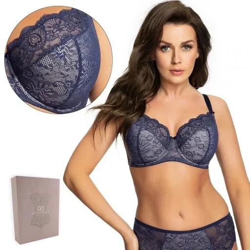 Elegantní polovyztužená podprsenka ušitíá z krajky. Spodní část košíčků je vyztužená měkkou pěnovou látkou, která je zevnitř pro větší pohodlí podšitá bavlnou. Horní část košíčků je ušitá z krajky a střed podprsenky dobře přiléhá k tělu. Mezi košíčky je mašlička. Ramínka jsou regulovatelná, neodepínací a podle velikosti modelu se liší jejich šířka. Na bocích jsou svislé kostice. Zapínání na dvou či tří řadé háčky s třístupňovou regulací obvodu.