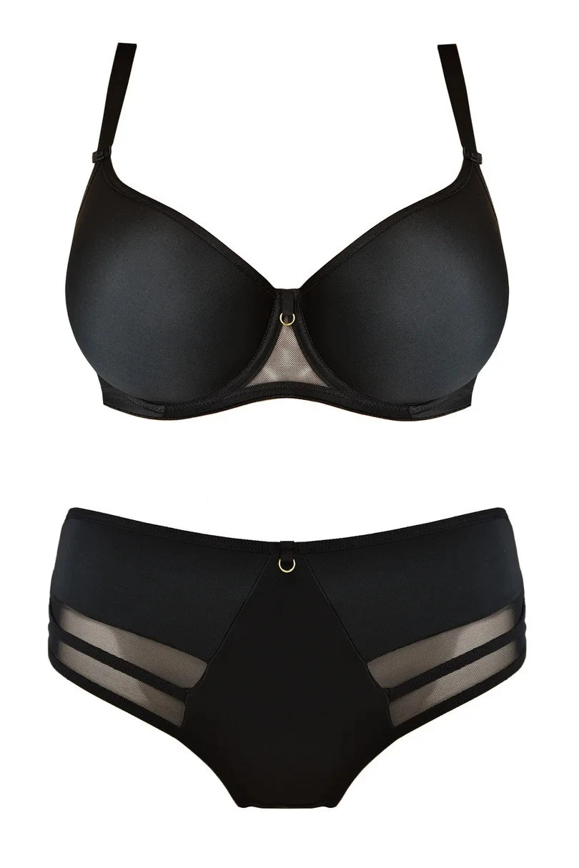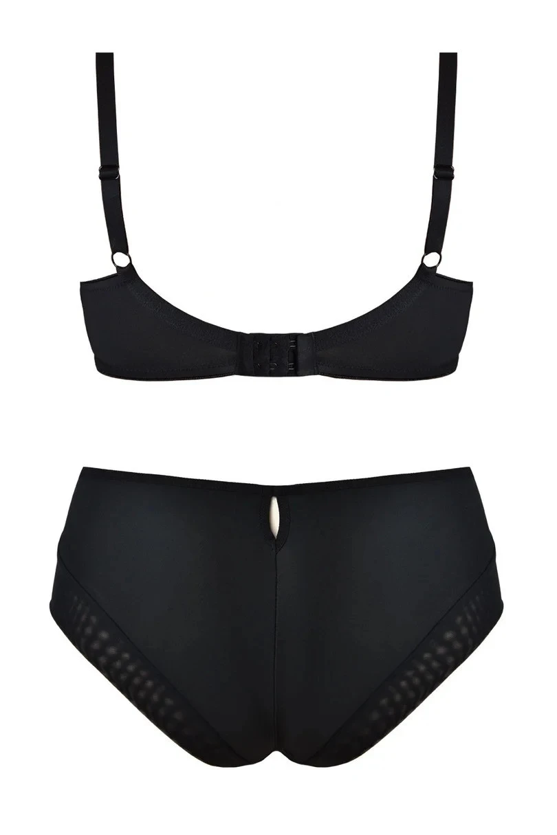 Podprsenka má navíc všitý tyl v oblasti hrudníku, který může ještě zvýšit komfort nošení. Uprostřed podprsenky je šperk, který jí dodává na estetice a eleganci. Košíčky jsou dále vyztuženy bočním panelem z tylu, který může poskytnout dodatečnou podporu a tvar poprsí.
