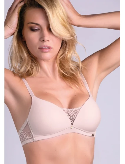 Dámská podprsenka Leilieve z nové řady Liberty. Hladká podprsenka je po obvodu kombinovaná s jemnou krajkou, stejně jako uprostřed košíčků je všitý krajkový klínek s drobnou kamínkovou aplikací. Podprsenka má hladké, vyztužné košíčky bez kostic, dokonale tvaruje dekolt. Ramínka jsou posuvná, dají se délkově nastavit. Zapíná se na dva háčky a má čtyři pozice.