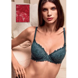 Elegantní krajková podprsenka Lormar v krásné sytě červené barvě působí výrazně a velmi žensky. Košíčky jsou vyztužené a doplněné kosticí, díky čemuž poskytují skvělou oporu i přirozeně vytvarovaný dekolt. Jemná krajka s květinovým motivem dodává podprsence luxusní vzhled a příjemně přiléhá k tělu. Ramínka jsou délkově nastavitelná pro dokonalé přizpůsobení. Ideální volba pro ženy, které hledají spojení pohodlí, elegance a krásné barvy.