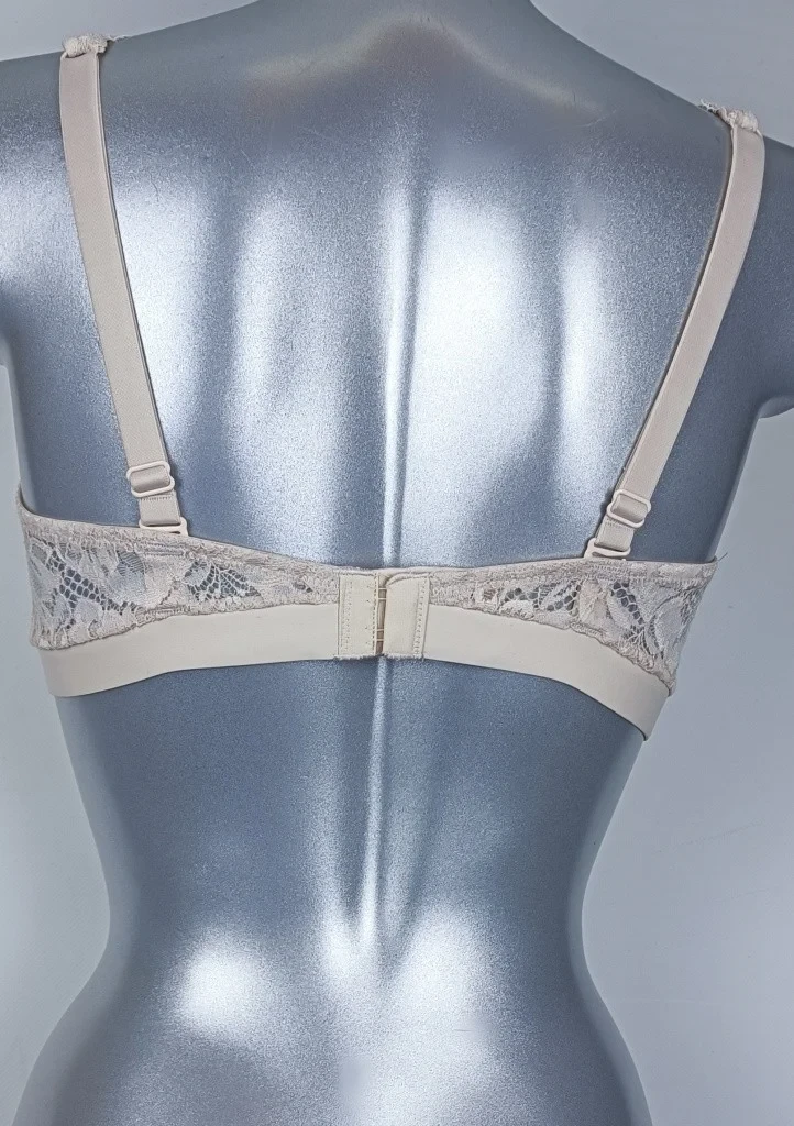 Dámská bezkosticová podprsenka od italské značky Lormar z nové kolekce Yourbody je určena pro každou ženu, která chce vyniknout a cítit se pohodlně. Podprsenka má trojúhelníkové košíčky s vycpávkami, které lze vyjmout. Je z jemné strečové krajky z mikrovlákna s neviditelným prošíváním. Spodní část obvodu je řešena pružnou gumou pošitou jemnou hladkou látkou. Raminka jsou u obvodu odepínatelná, dají se nosit i překříženě. Zapínání je na dva háčky ve čtyech řadách. Je ekologická, recyklovatelná.