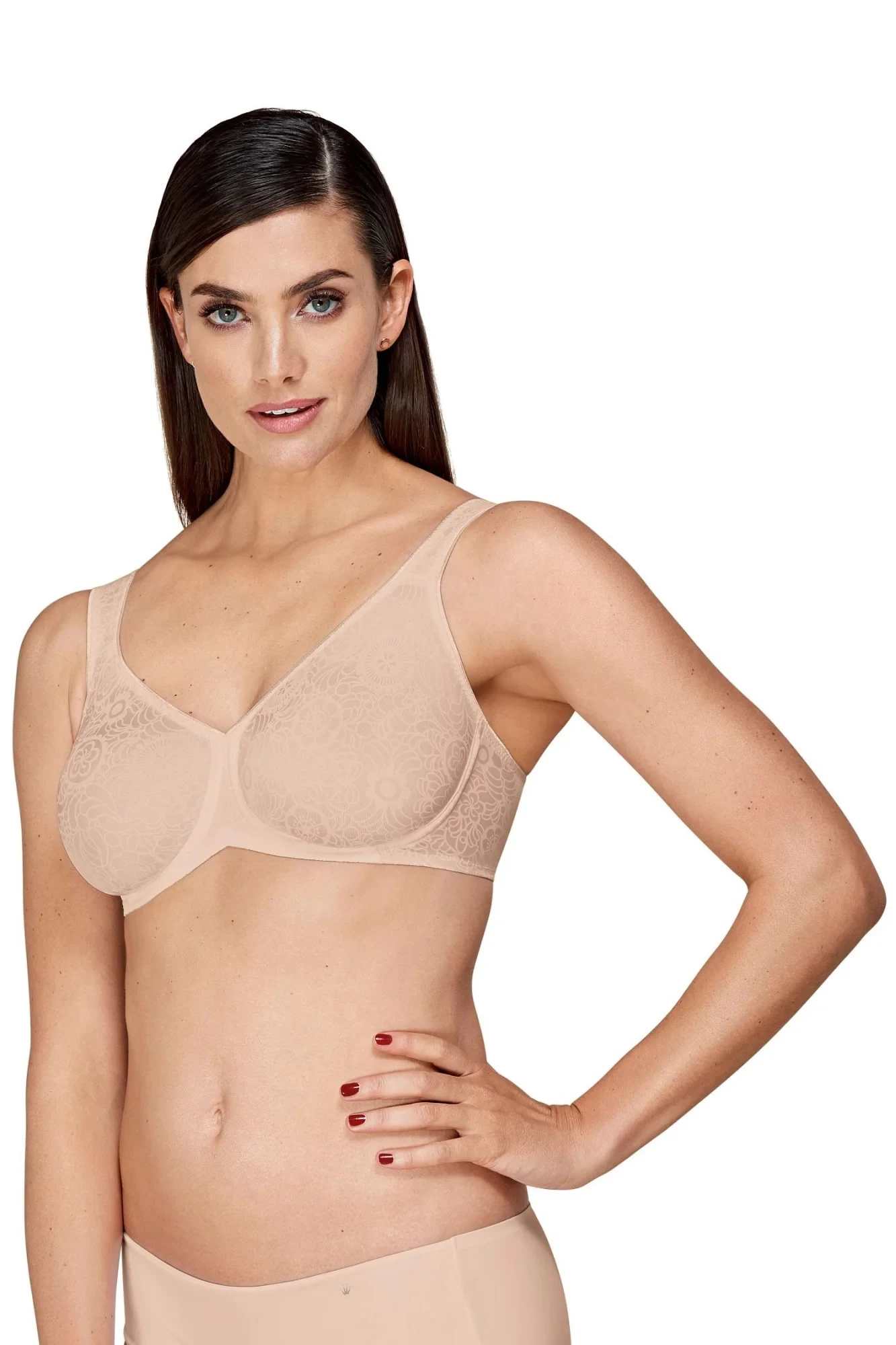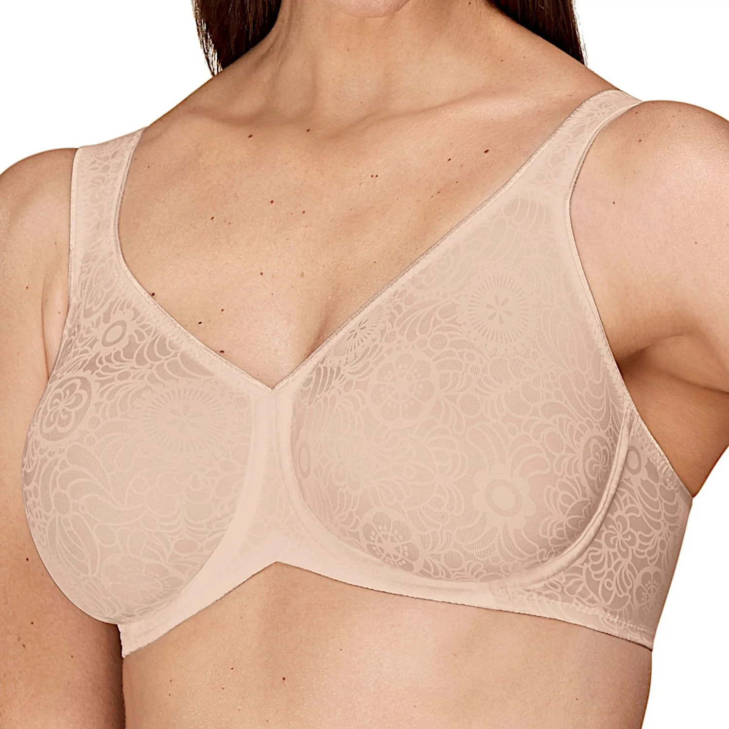 Dámská podprsenka Lovely minimizer WX beige Triumph - béžová barva - z hladkého materiálu - s květovaným vzorem - opticky zmenšuje velikost prsou až o jednu velikost košíčku - s kosticemi - nastavitelná ramínka - zapínání vzadu