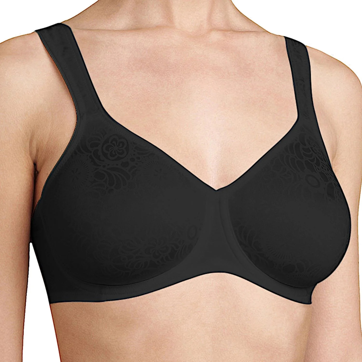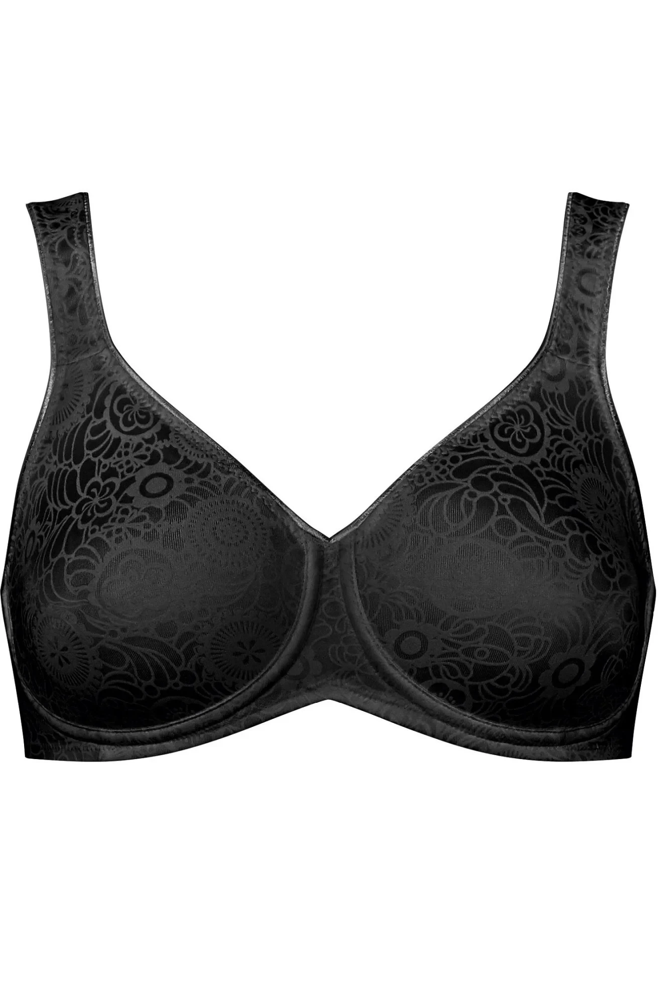 Dámská podprsenka Lovely minimizer WX black Triumph - černá barva - z hladkého materiálu - s květovaným vzorem - opticky zmenšuje velikost prsou až o jednu velikost košíčku - s kosticemi - nastavitelná ramínka - zapínání vzadu
