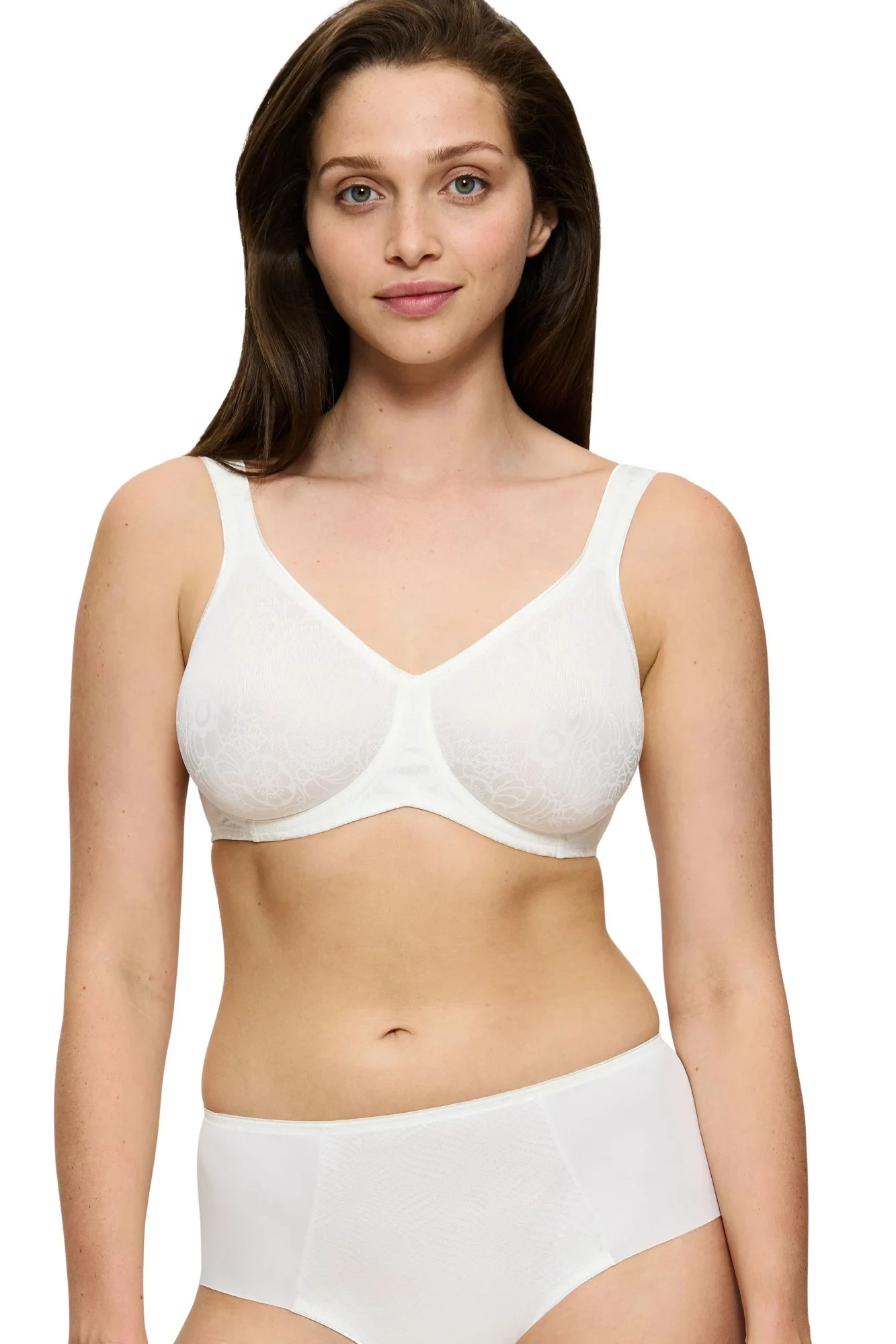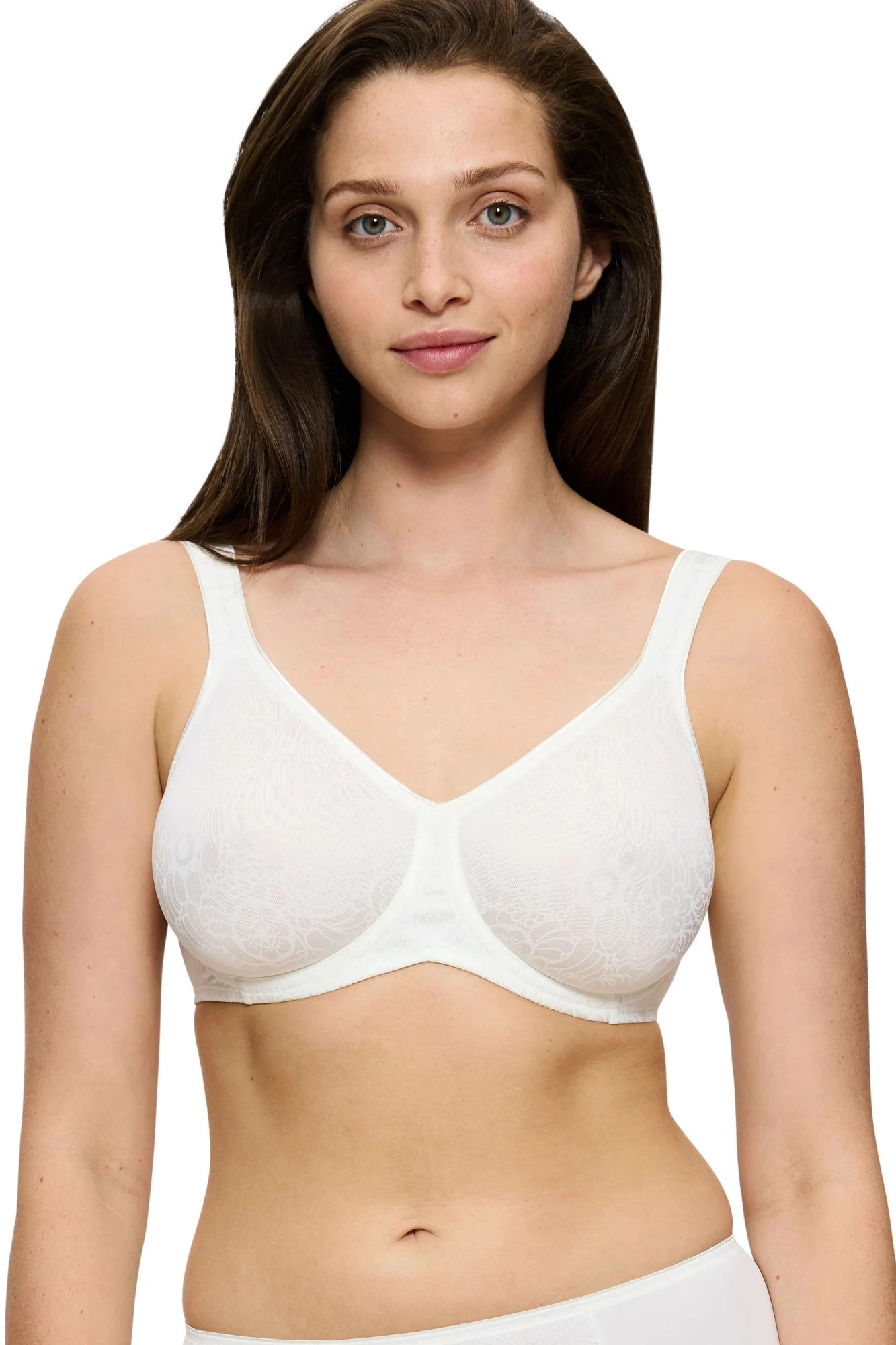 Dámská podprsenka Lovely minimizer WX white Triumph - krémová barva - z hladkého materiálu - s květovaným vzorem - opticky zmenšuje velikost prsou až o jednu velikost košíčku - s kosticemi - nastavitelná ramínka - zapínání vzadu