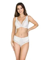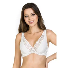 Dekolt zdobí měkká krajka. Košíčky jsou vyrobené z pěkného mikrovlákna v mléčné barvě s jemným vzorem. Po celé délce košíčků se táhne jeden svislý šev. Ve spodní části košíčků je malý záševek. Košíčky jsou vytvarované tak, aby dodávaly poprsí přirozený tvar. Díky použitým materiálům poskytuje podprsenka neobyčejné pohodlí a komfort. Model je vhodný pro ženy s malým a středně velkým poprsím. Široká ramínka jsou pohodlná.