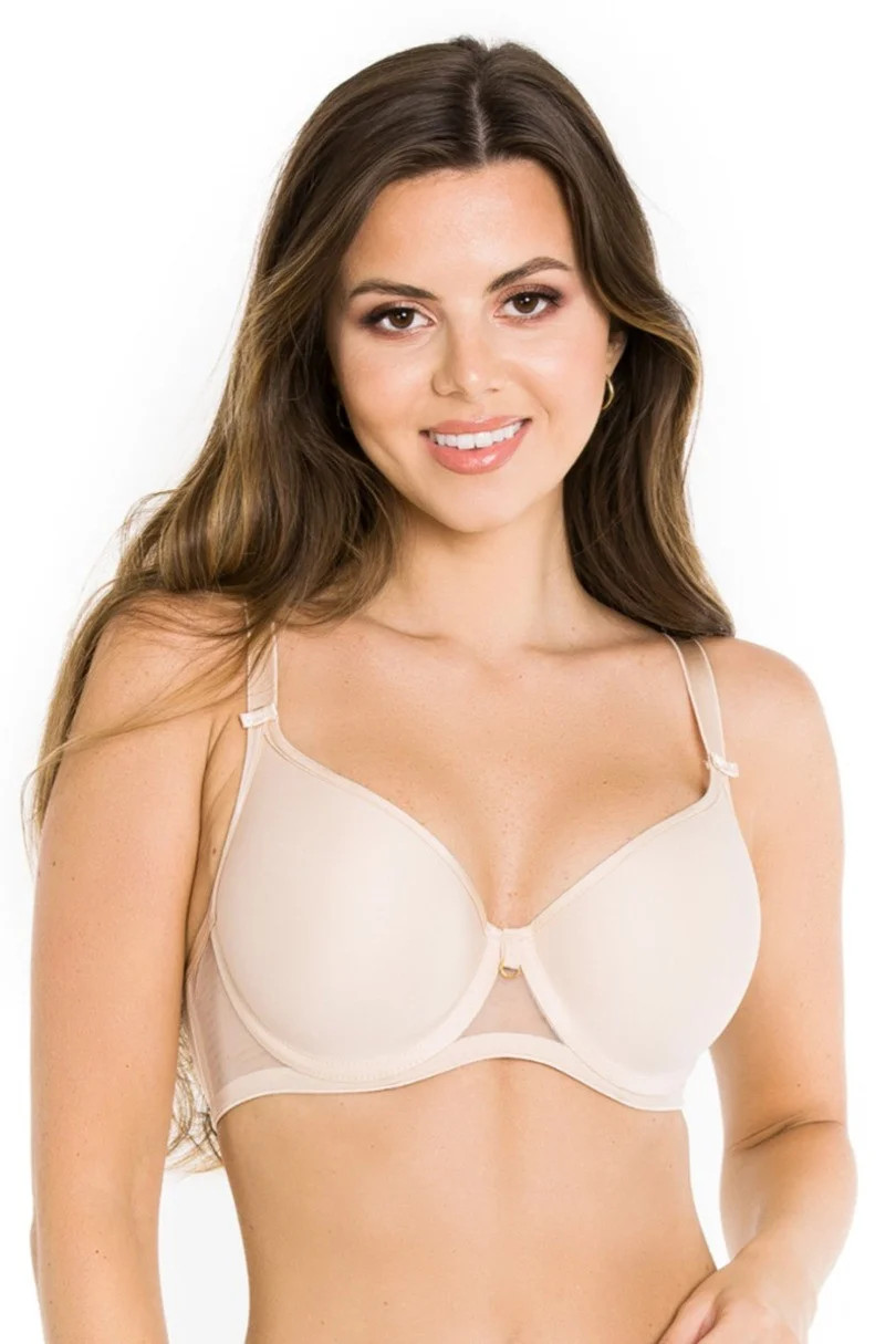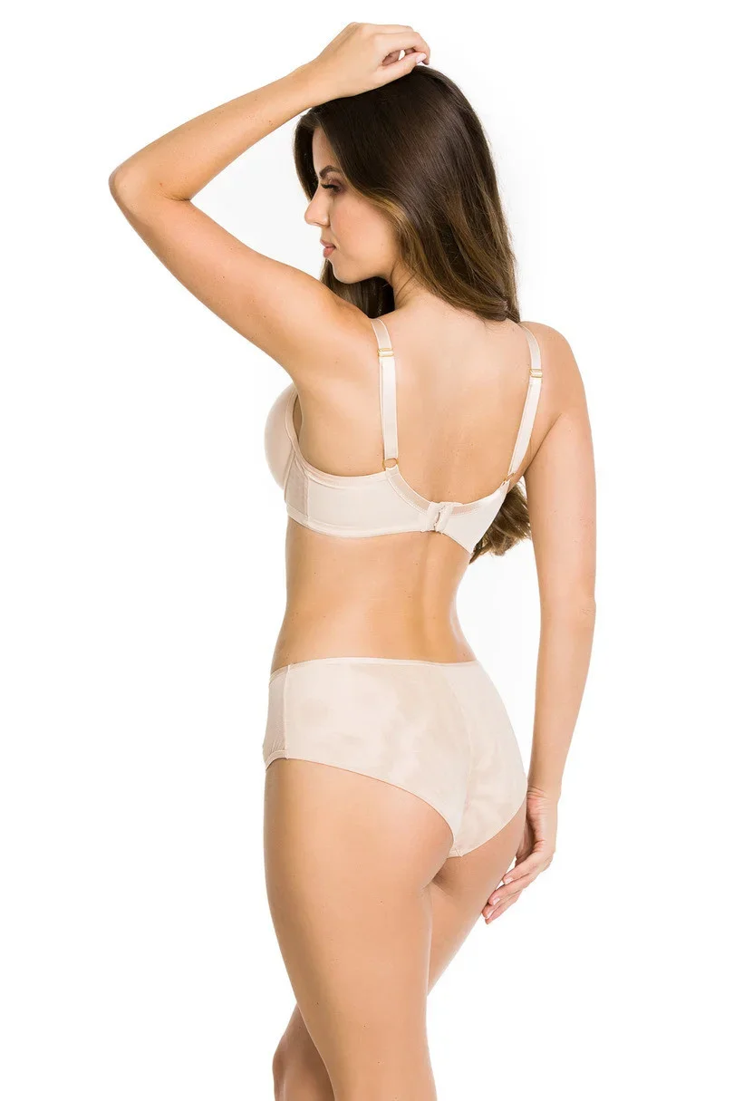 Košíčky jsou vyrobené z měkké hladké houbičky a jsou hladké a pružné. Boky modelu jsou ušité z pružné tkaniny. Na bocích je také dvojitá síťovina, díky které již nejsou potřeba boční kostice. Ve středu podprsenky je síťovina a ozdobné zlaté kolečko. Spojení košíčků s ramínky zdobí malé mašličky. Ramínka není možné odepnout.