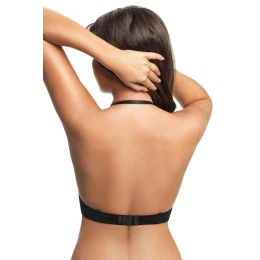 Podprsenka od Gorsenia. Model G025. Svislé velrybí kosti zasazené po stranách. Výrobek má nastavitelné, odnímatelné ramenní popruhy. Kovové háčky na popruh. Podprsenka se zapínáním na háčky a oči. Upevňovací bod: vzadu. Dvě řady svislých háčků. Tři stupně horizontálních háčků. Výrobek je vyroben z 90 % z polyamidu, 7 % z elastanu a 3 % z polyesteru. Výrobek pro ženy. Výhody produktu: originální pro hluboké push-up výstřihy. Výrobek má tvarovanou misku.