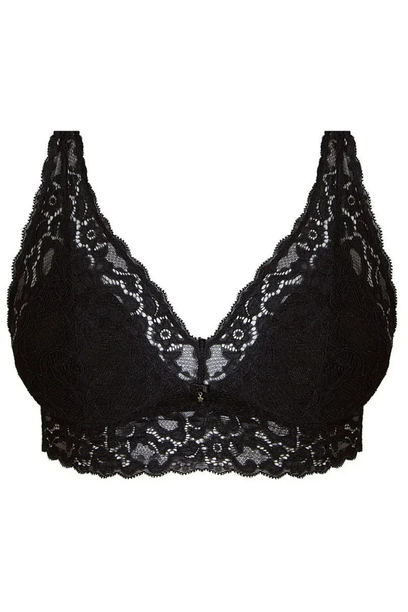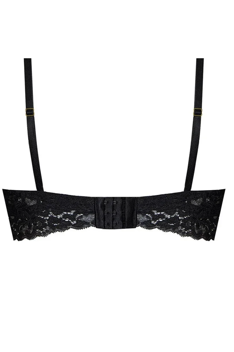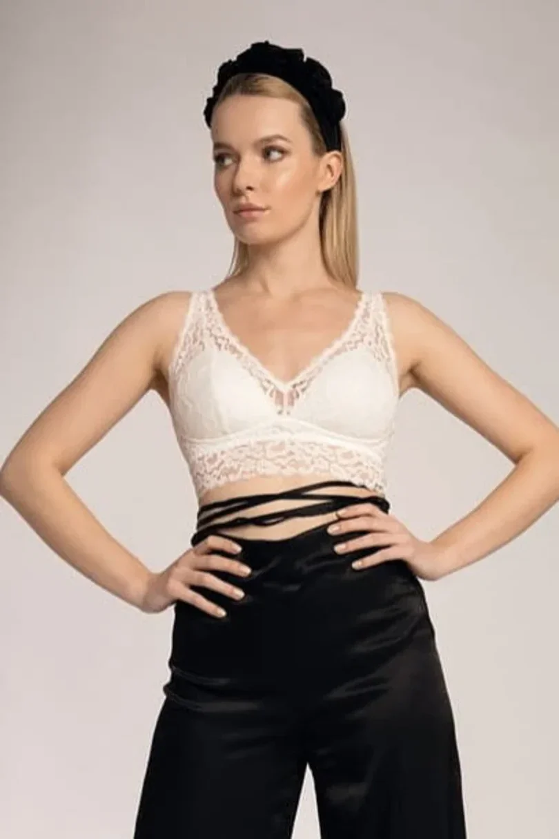 Měkká krajková podprsenka vyrobená výhradně z krajky. Košíčky tróhranatého tvaru polstrované pěnou.