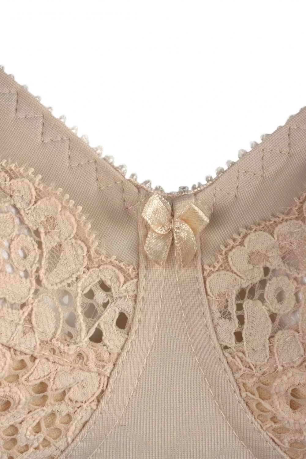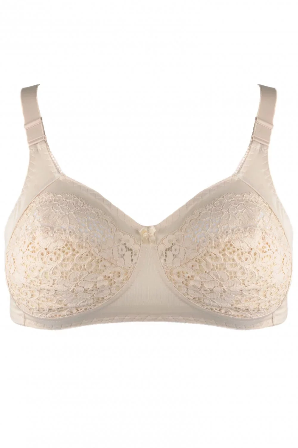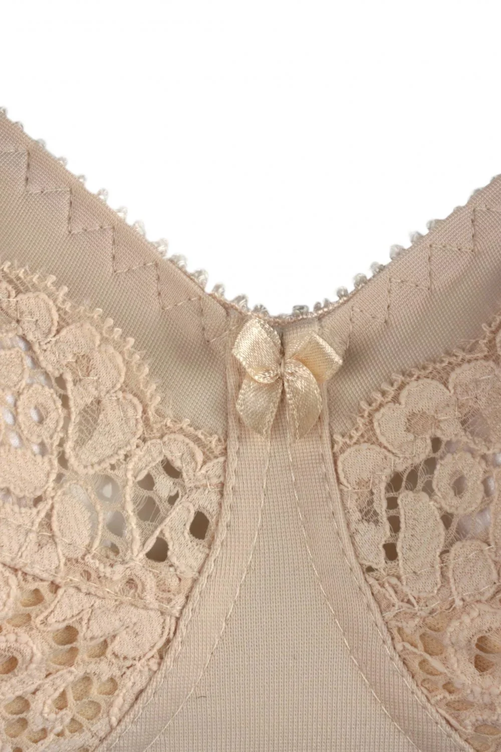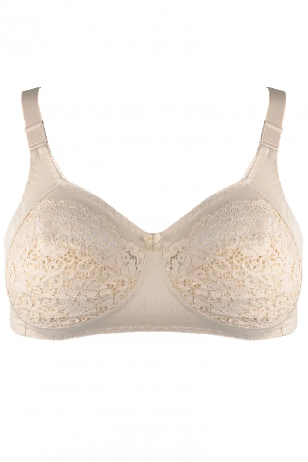 Podprsenka pro ženy s větším poprsím 579 Viki - je ušitá z krajky - vnitřek košíčků je podšitý jemnou bavlnou - má široká ramínka a třístupňové zapínání - krásně podtrhne tvar poprsí