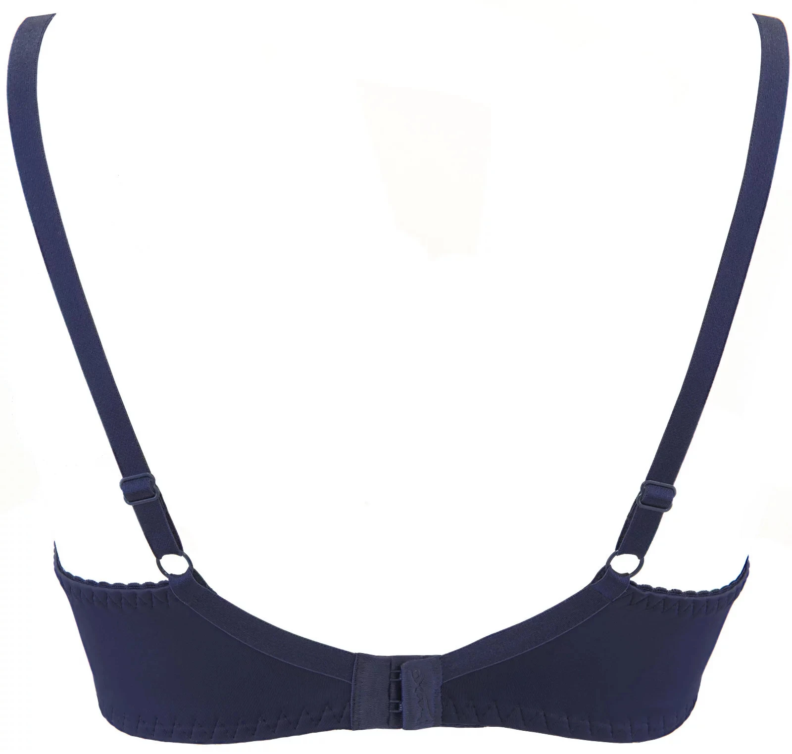 Měkká, okouzlující podprsenka zdobená zlatomodrou třpytivou výšivkou je nezapomenutelným návrhem připomínajícím osvětlenou hvězdnou oblohu, která obepíná poprsí pro pohodlí a ultra komfort . Nastavitelná ramínka a dvouřadové zapínání pro dokonalé přizpůsobení.doplňte svůj komplet o krásné krajkové kalhotky V-9343.