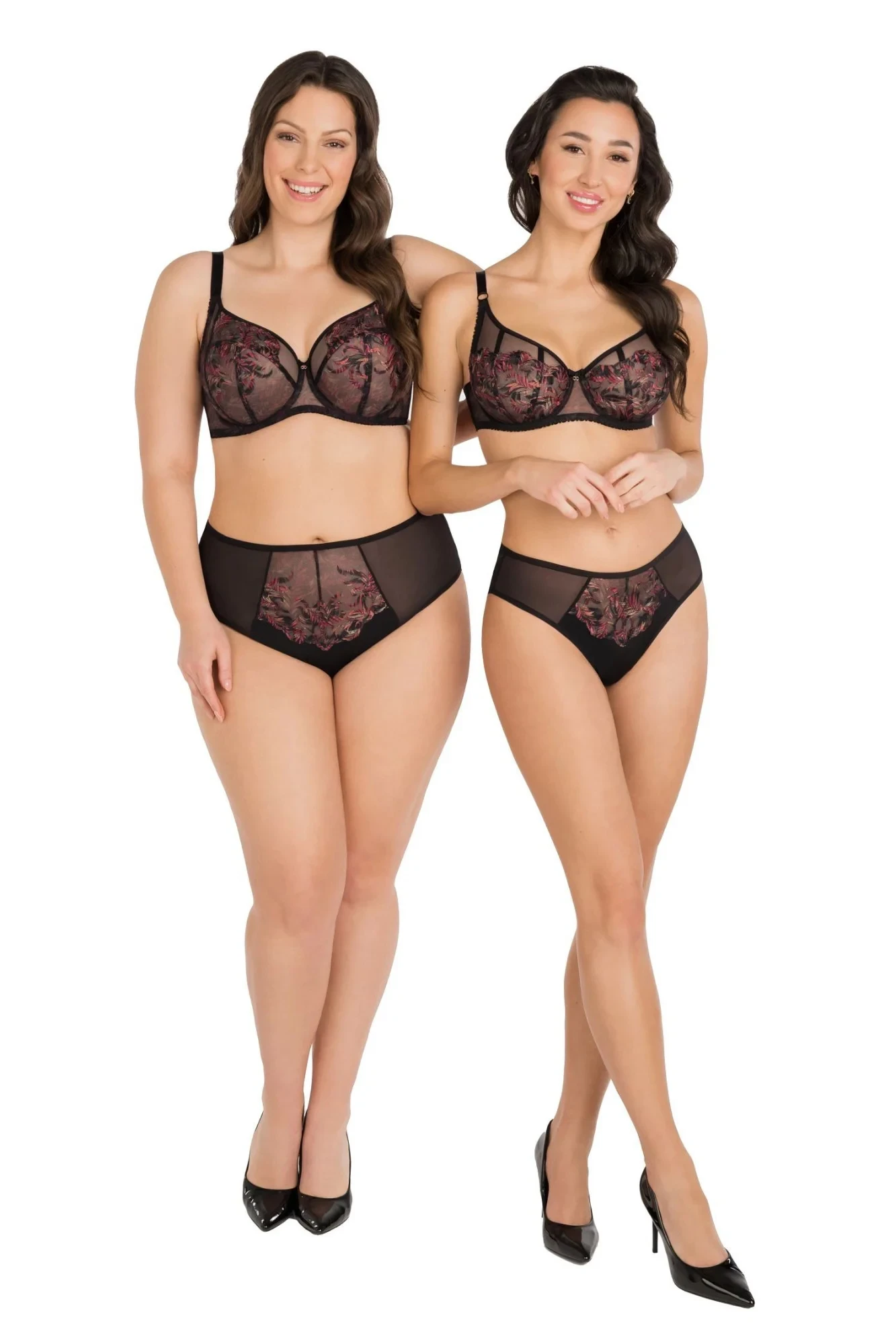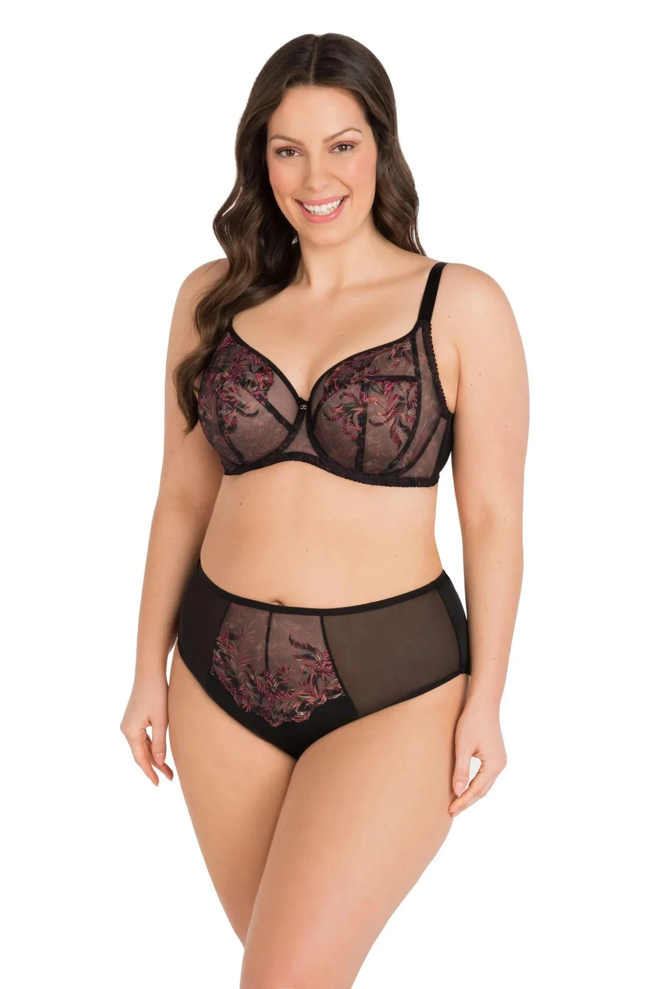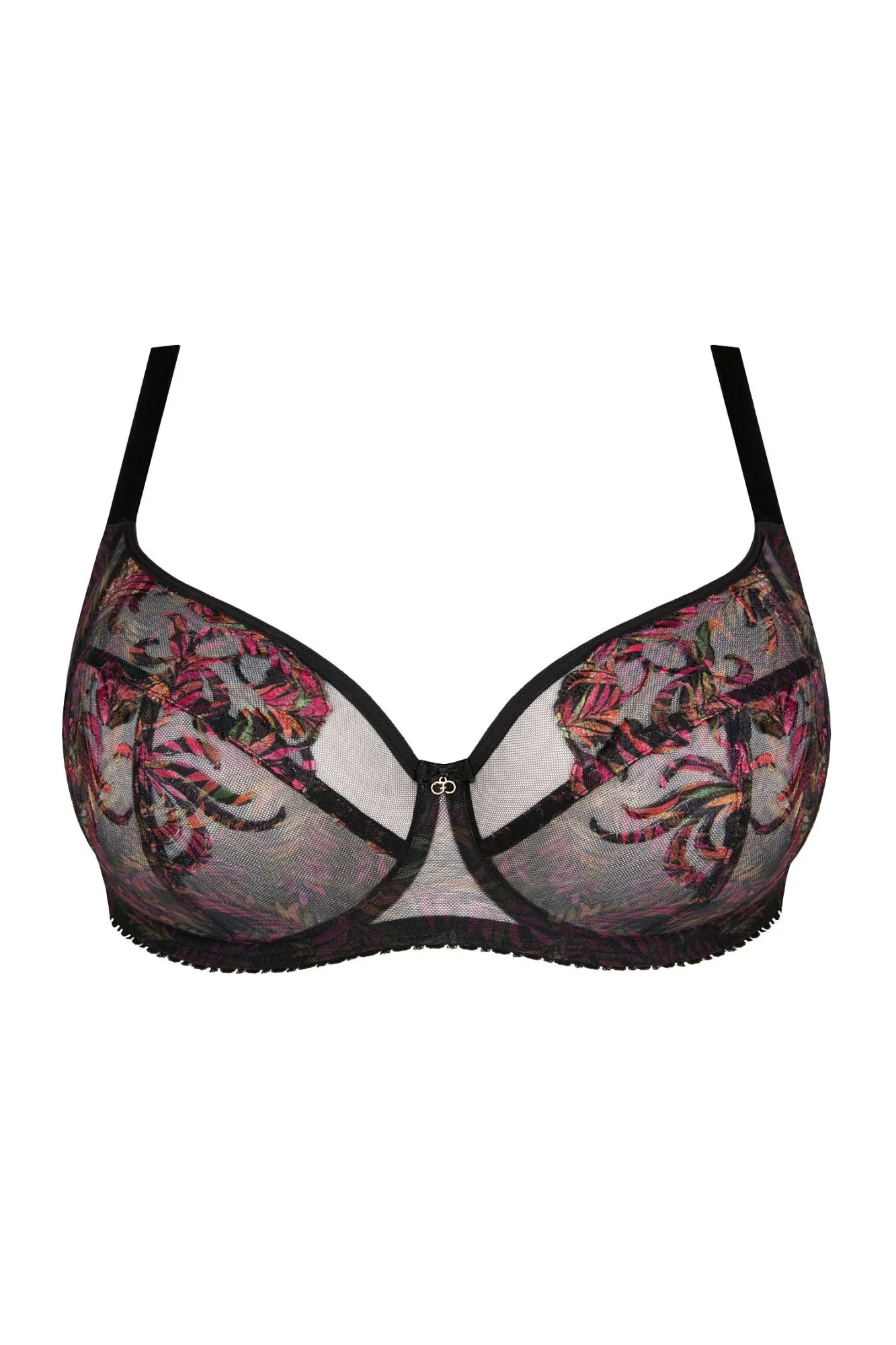 Dámská podprsenka 792 Jenny GORSENIA - černá barva - měkká podprsenka - s kosticemi - z průhledné dvojité síťoviny - zdobená barevnou výšivkou - ramínka nastavitelná a neodepínatelná